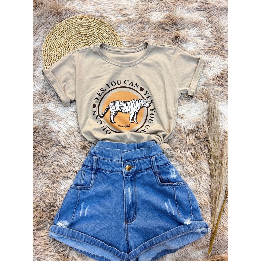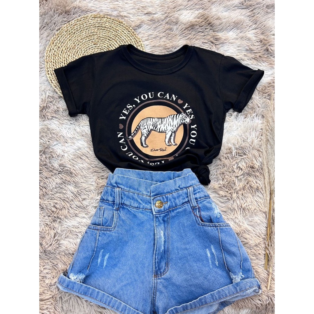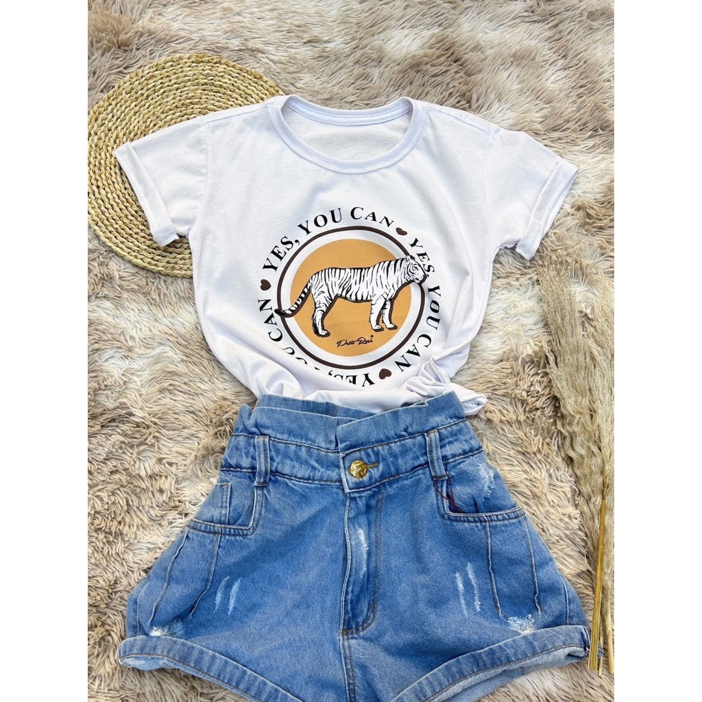 Camiseta T-Shirt Feminina Algodão simples YES.YOU CAN