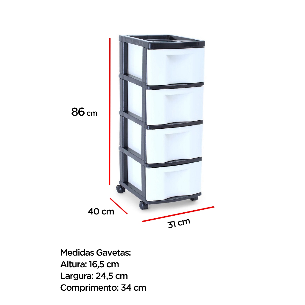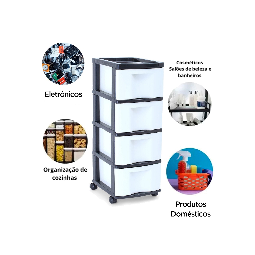 Gaveteiro GV 4 Gavetas Grandes e Estrutura Reforçada Cabeleireiro, Manicure, Escritório, Eletrônicos