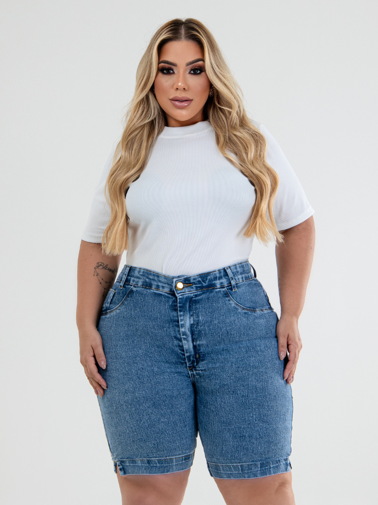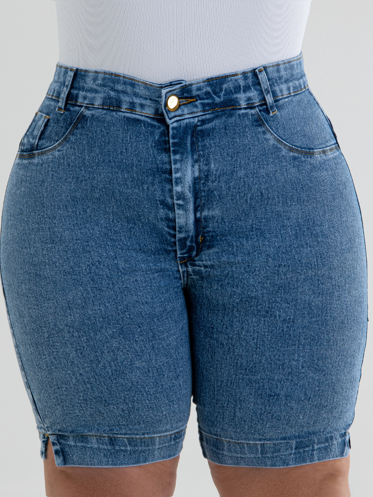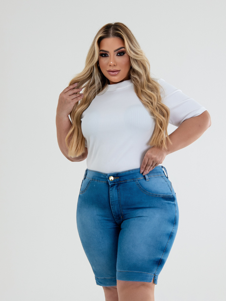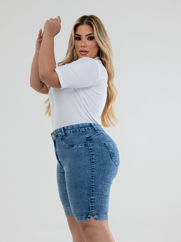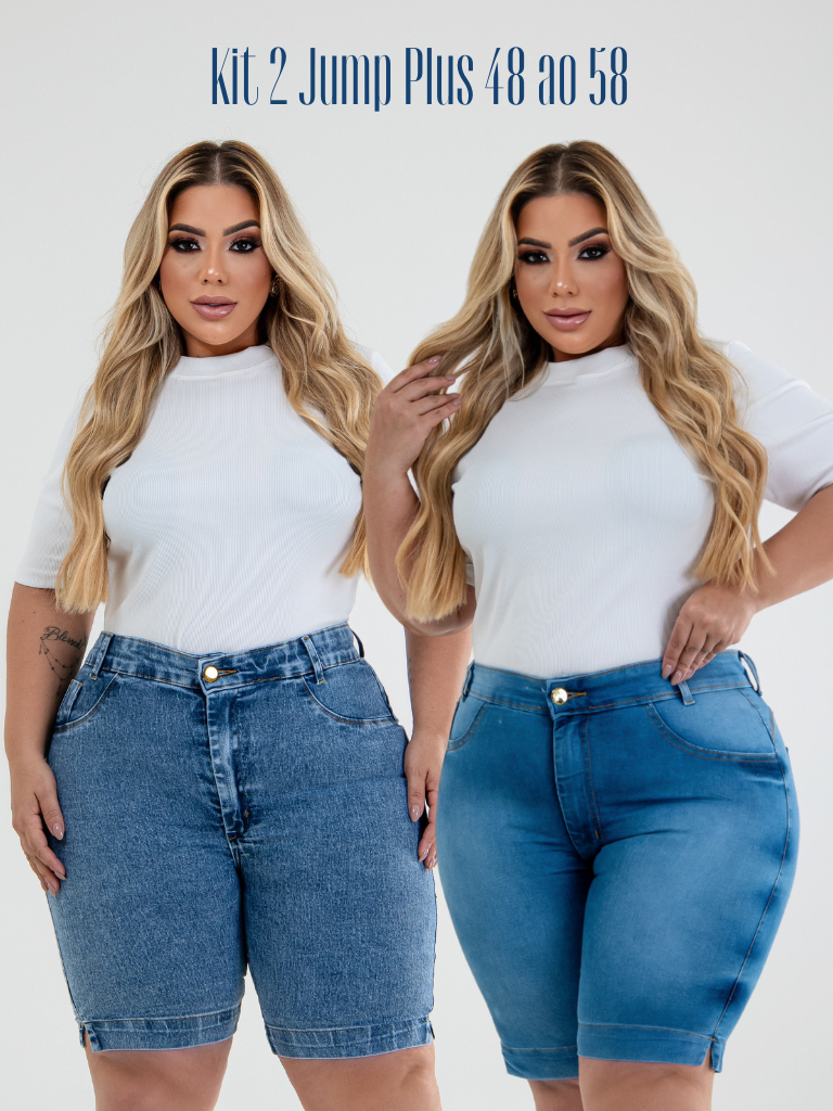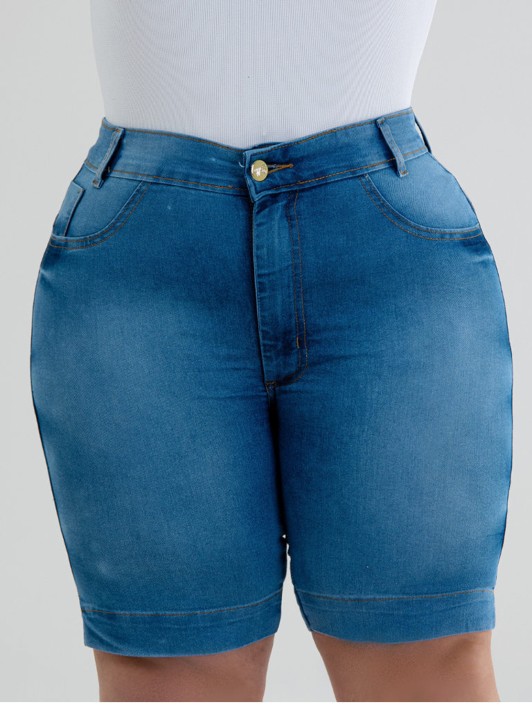 Kit 02 Bermudas Jeans Plus Size Para O Carnaval Cintura Alta Até o Joelho Elastano Modelagem Levanta Bumbum