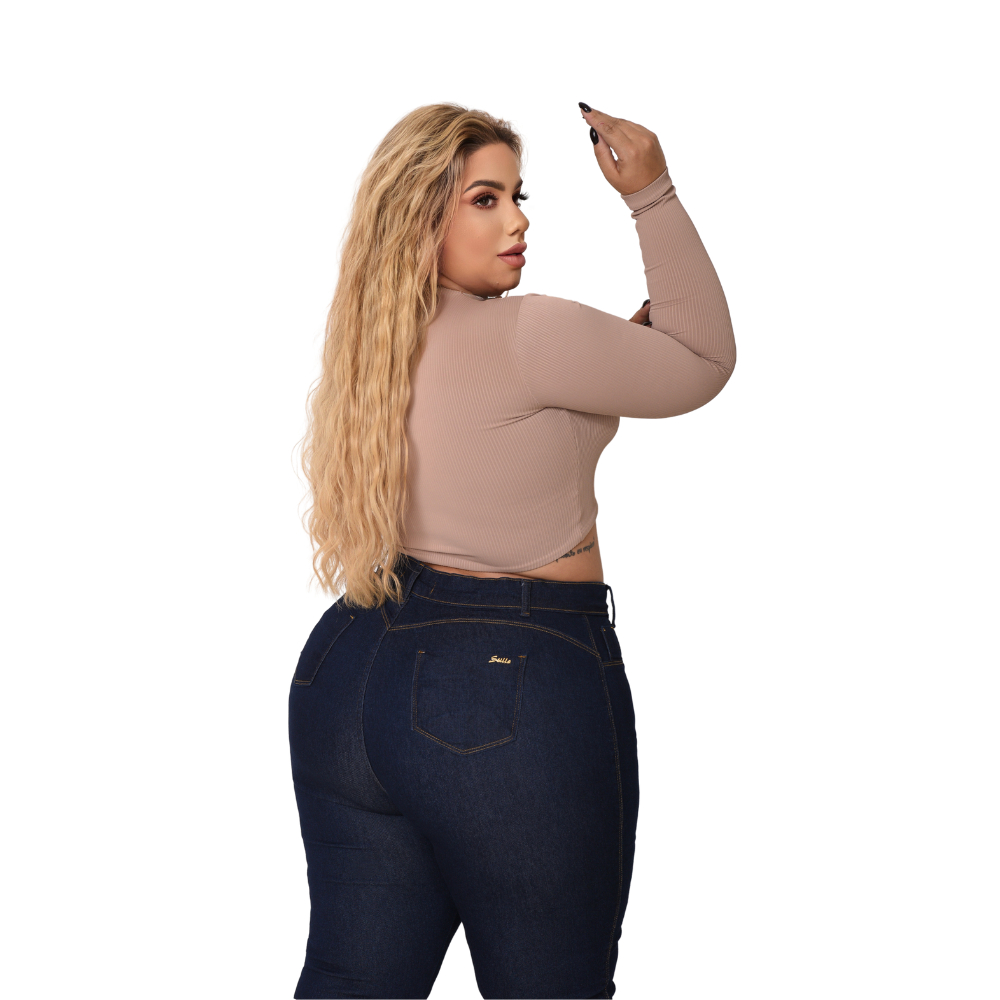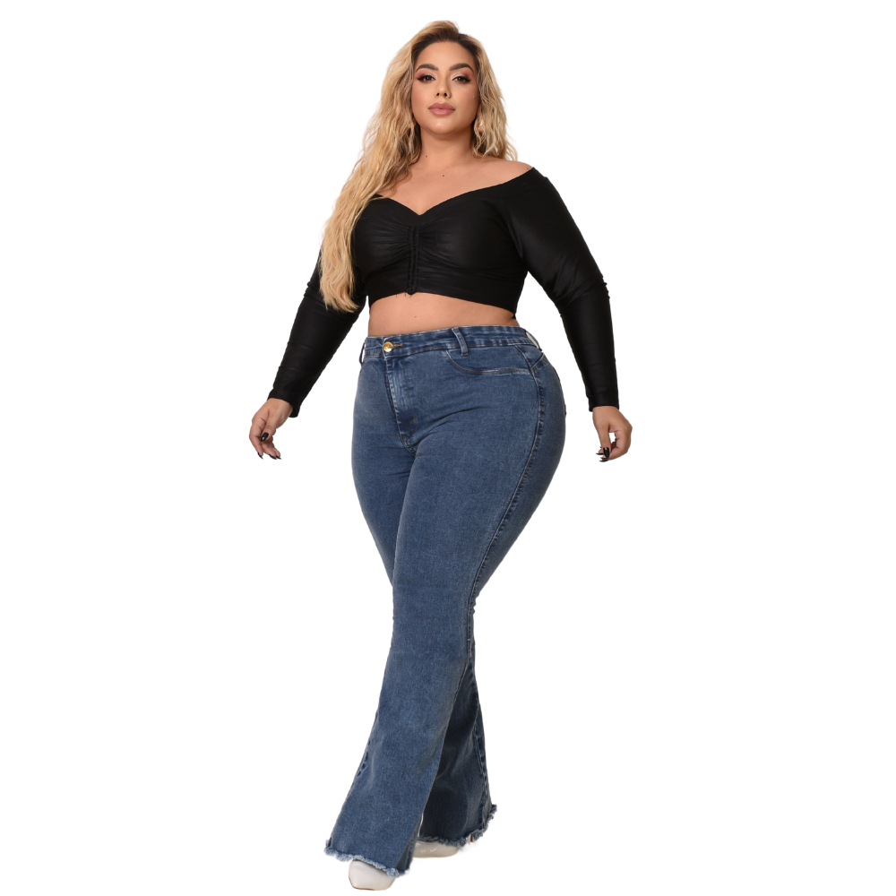 Kit 02 Calças Feminina Flare Marmorizada e Azul Escura Lycra Modelagem Levanta Bumbum Curve- Premier