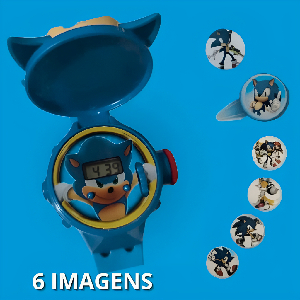 Relógio Sonic Projetor De Imagens Tema Filme Sonic 3 + Boneco Sonic 16 Cm + Caneca Personalizada Sonic