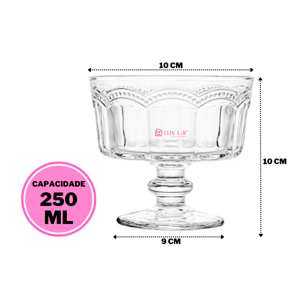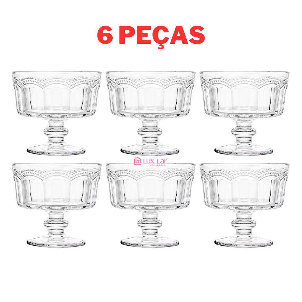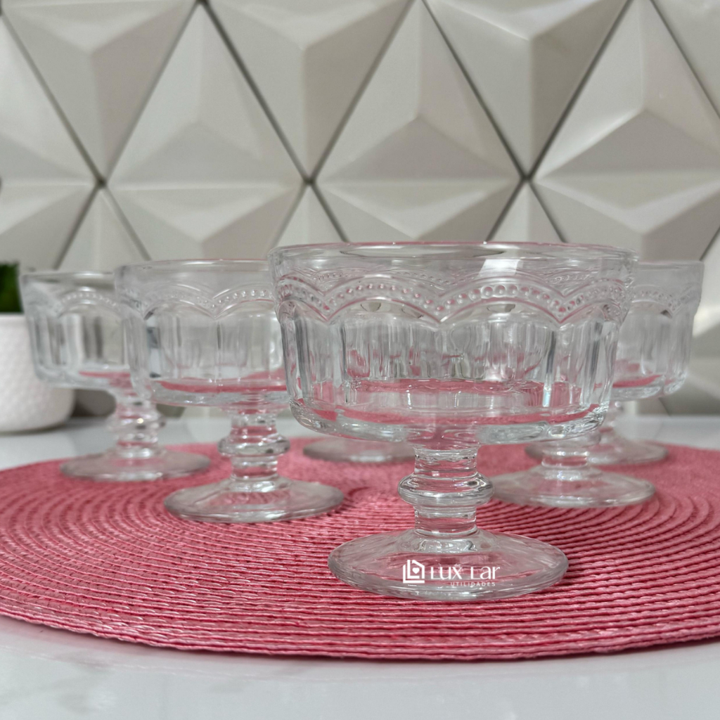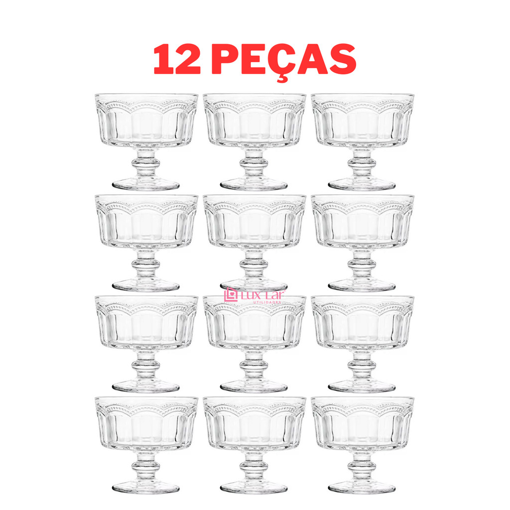 Jogo 12 Taças de Vidro para Sobremesa Tigela Bowl Transparente Petisqueira Sorvete Paris-
