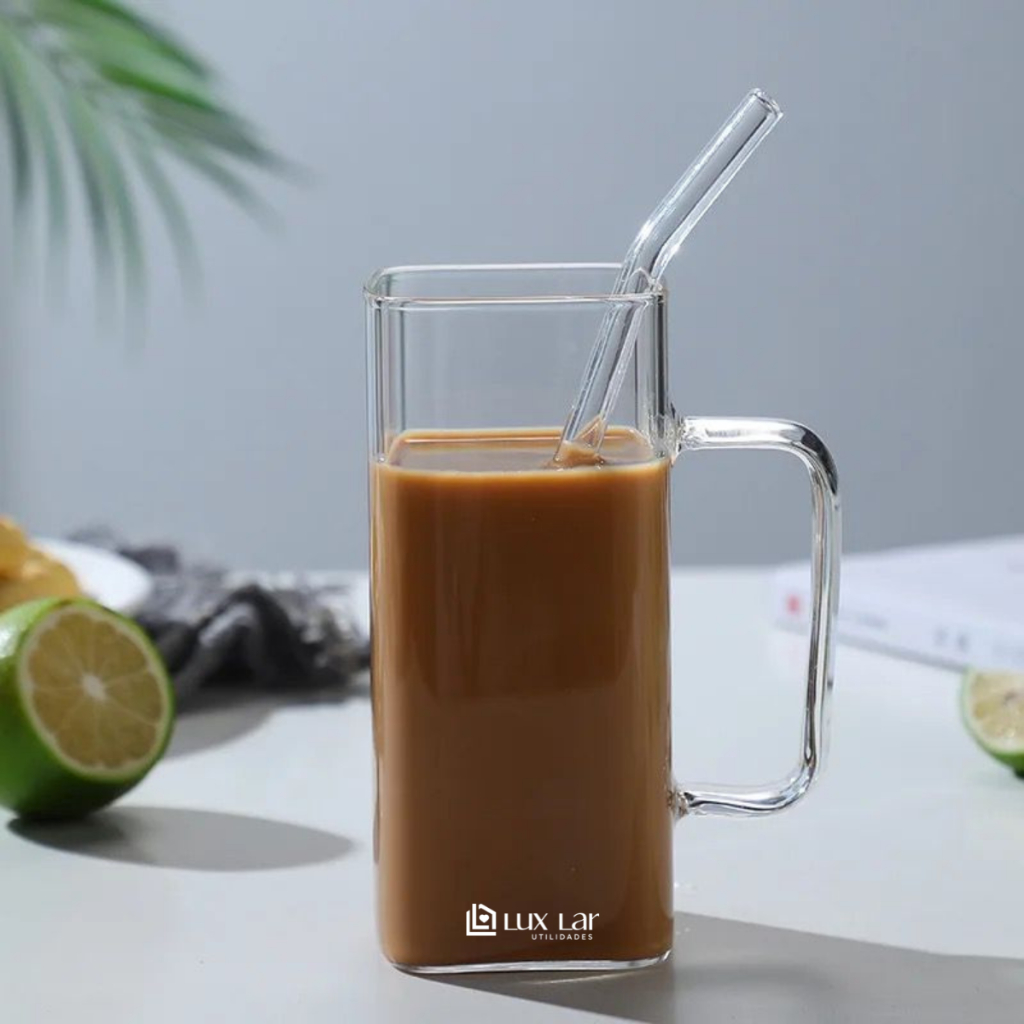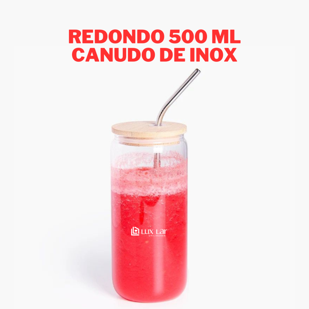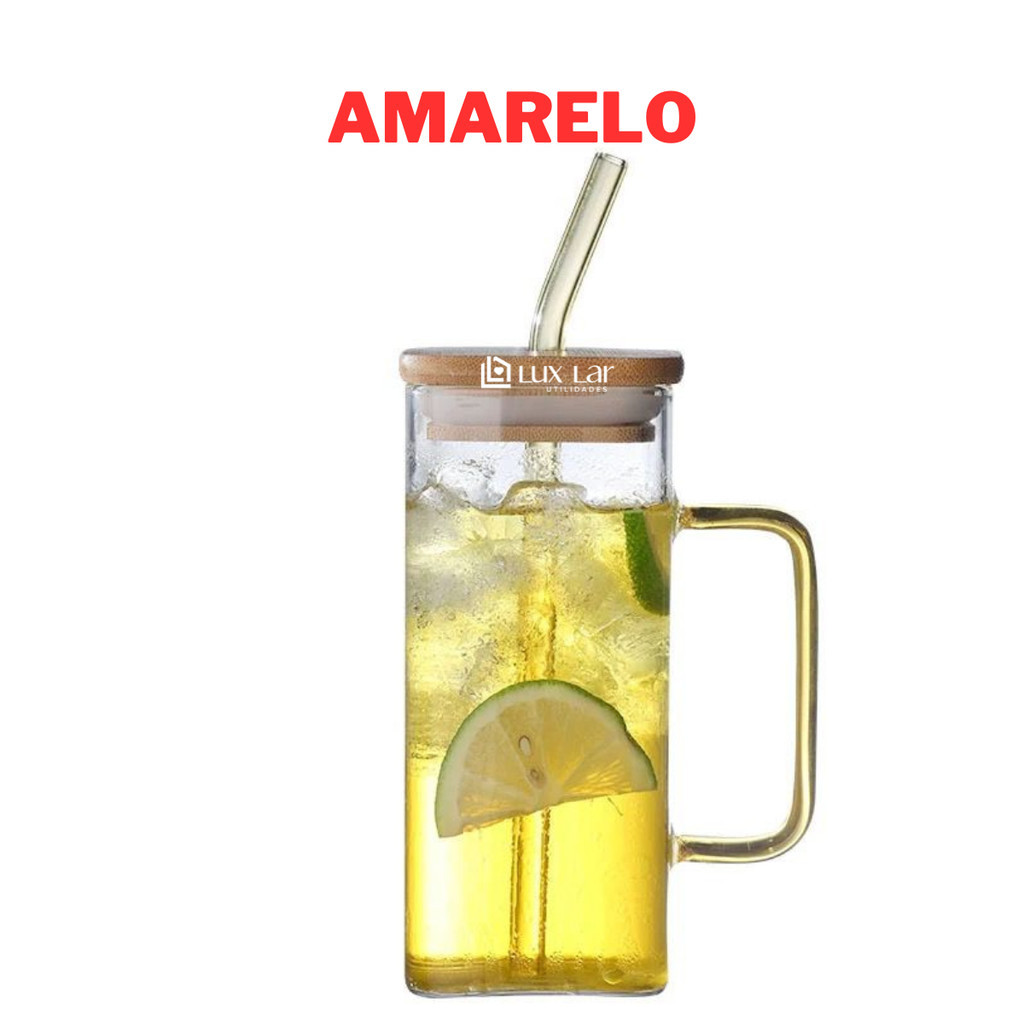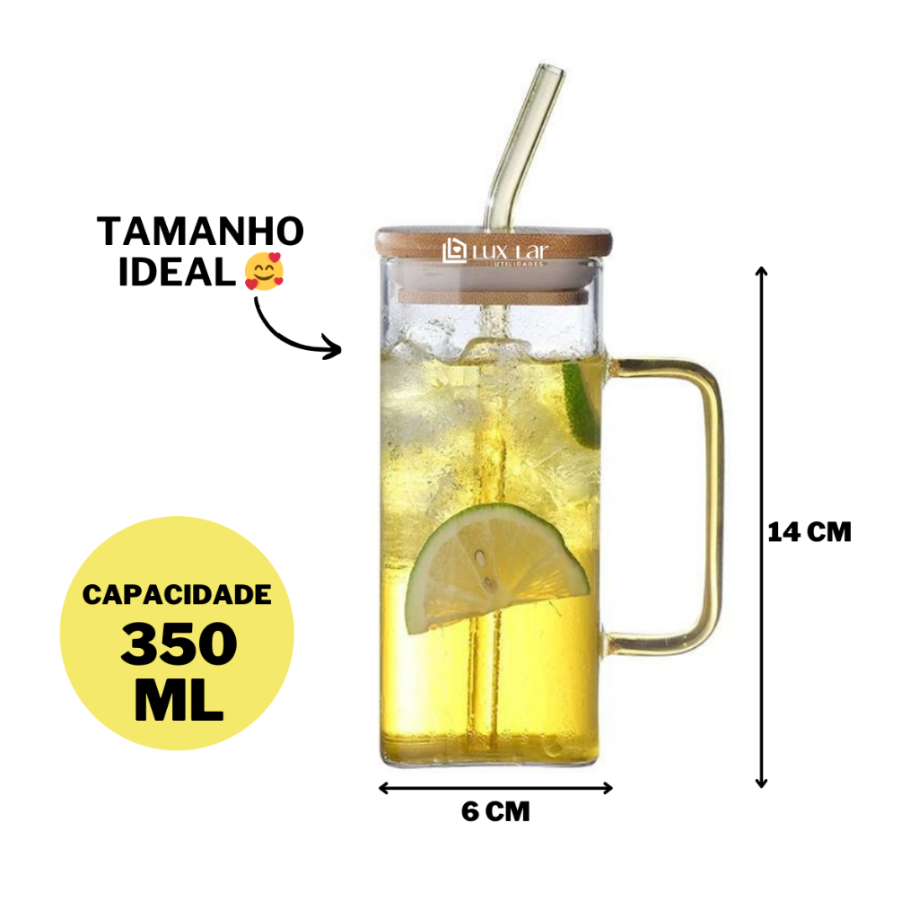 Copo de Vidro com Canudo tampa de Bambu Hermético 350ml Resistente