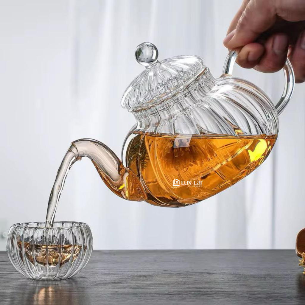 kit Xícara de Café Chá de Vidro Chaleira Bule com Infusor Borossilicato com Tampa Transparente