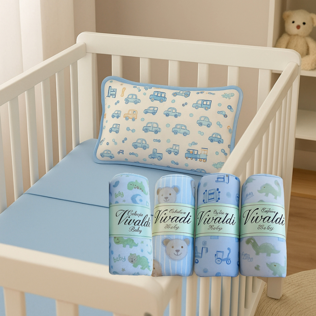 Kit 4 Jogos de Berço Padrão Americano Lençol e Fronha 100% Algodão – Menino e Menina