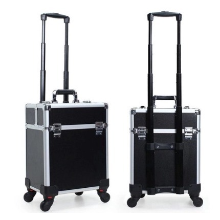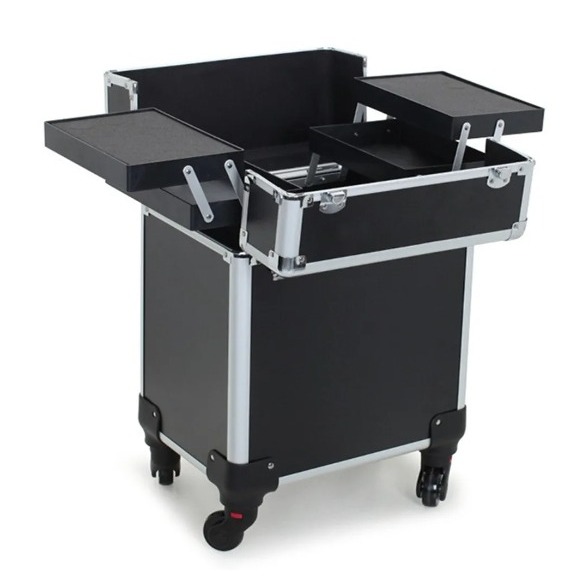 Maleta Mala de Maquiagem Profissional Divisórias e Rodinha 1+ Andar Completa Preta