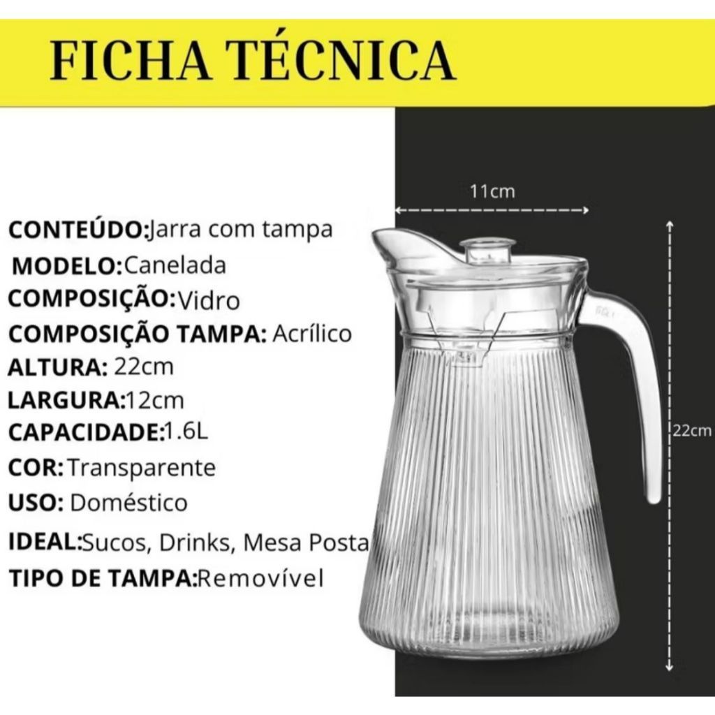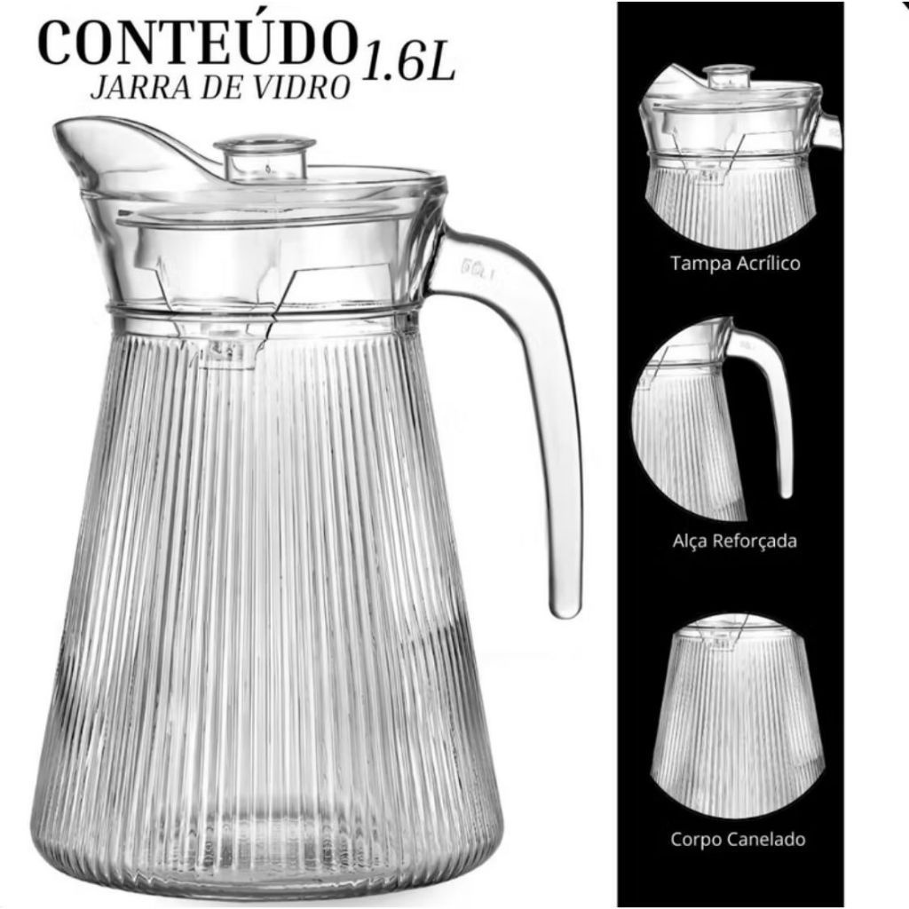 Jarra De Vidro Transparente Com Tampa Acrilico 1620ml