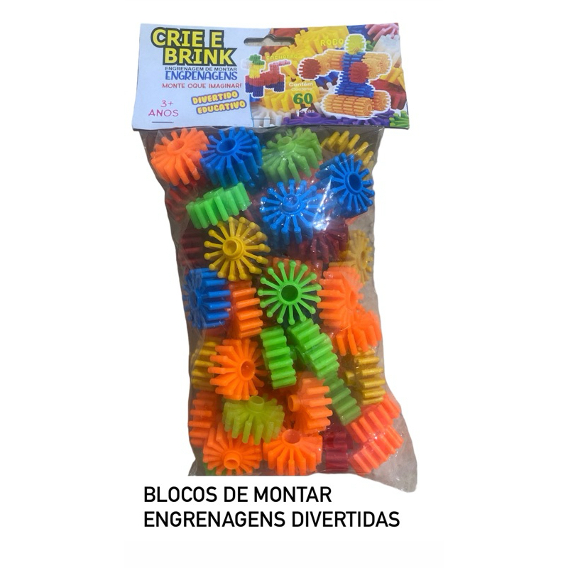 Blocos De Montar Coloridos Engrenagens Divertida 60 Peças Brinquedo Educativo Didático infantil