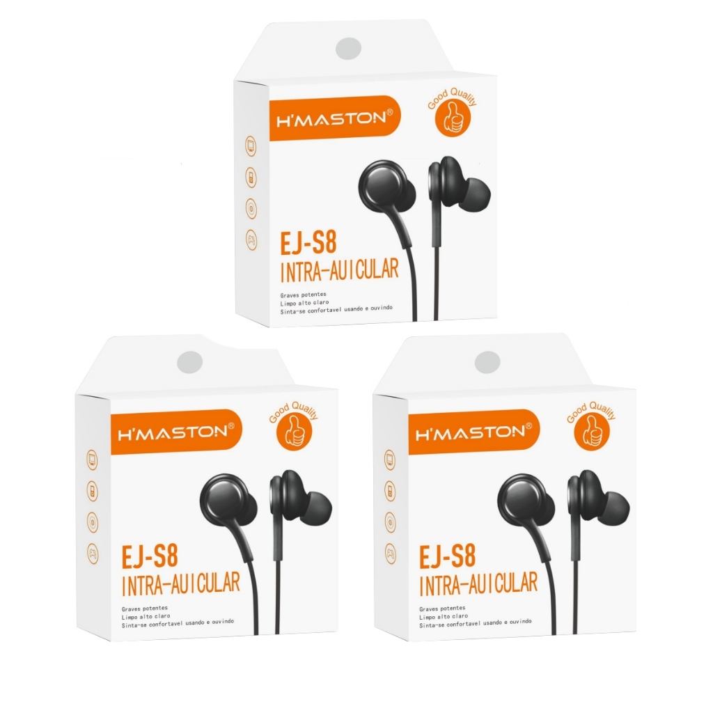H'maston Fone De Ouvido EJ-S8 P2 Com Microfone Preto 1,2 metros