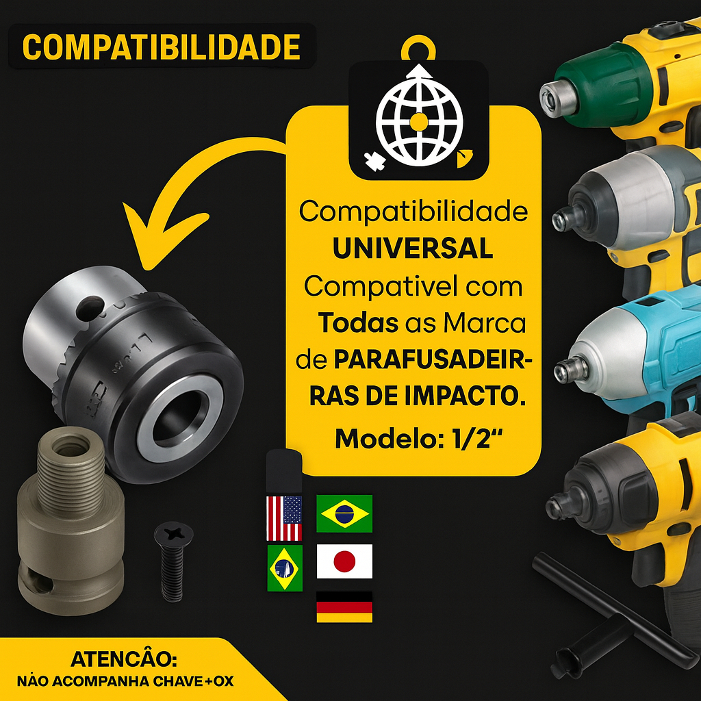 Kit Mandril Furadeira Com Adaptador SDSPLUS Para Martelete Bosch, MAKITA,Vonder 1/2'' 1.5~13mm