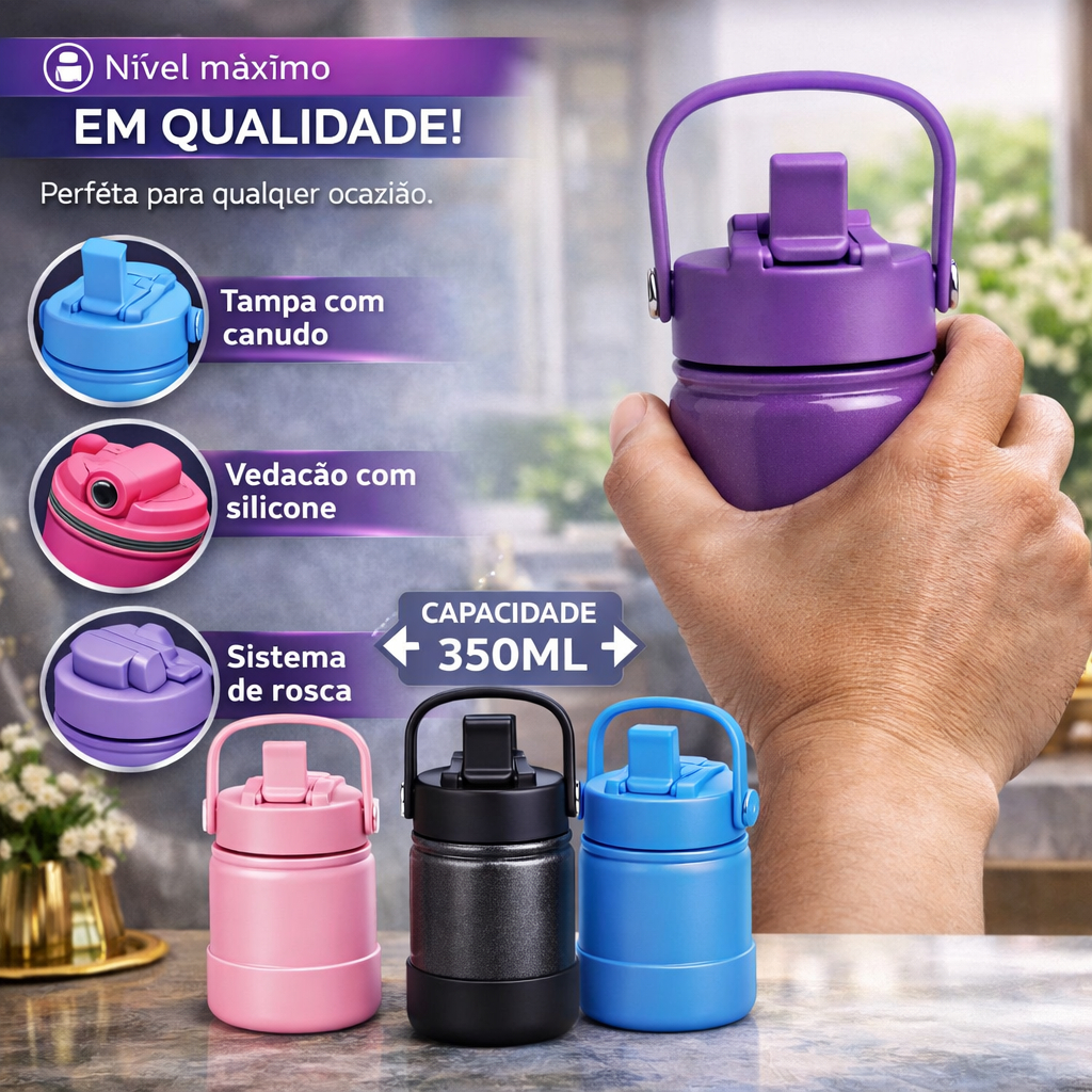 Garrafa Térmica Inox Agua 350ml Capinha Borracha Silicone
