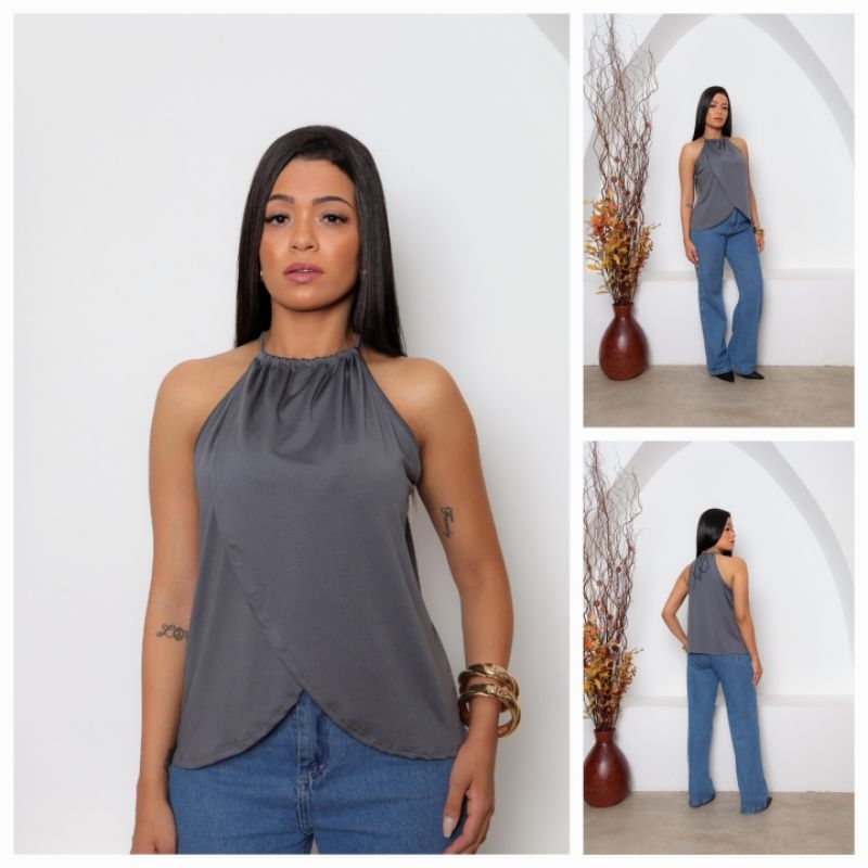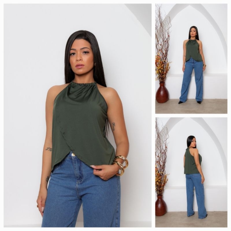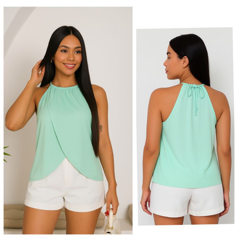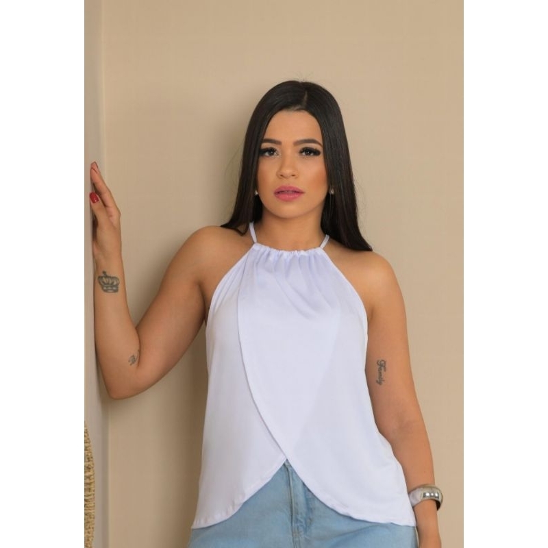 Regata Bata Femenina Transpassada com Gola de Amarrar Flare tecido suplex