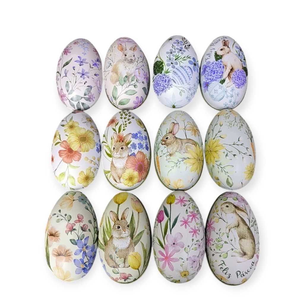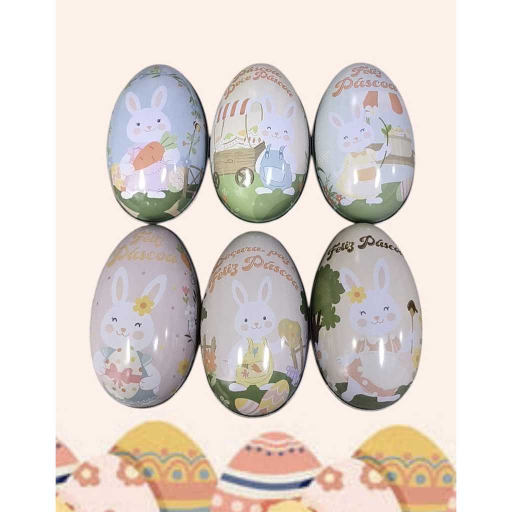 KIT 06 Lata Ovos Metal Colecionavel Ovos de Pascoa Enfeite Porta Treco