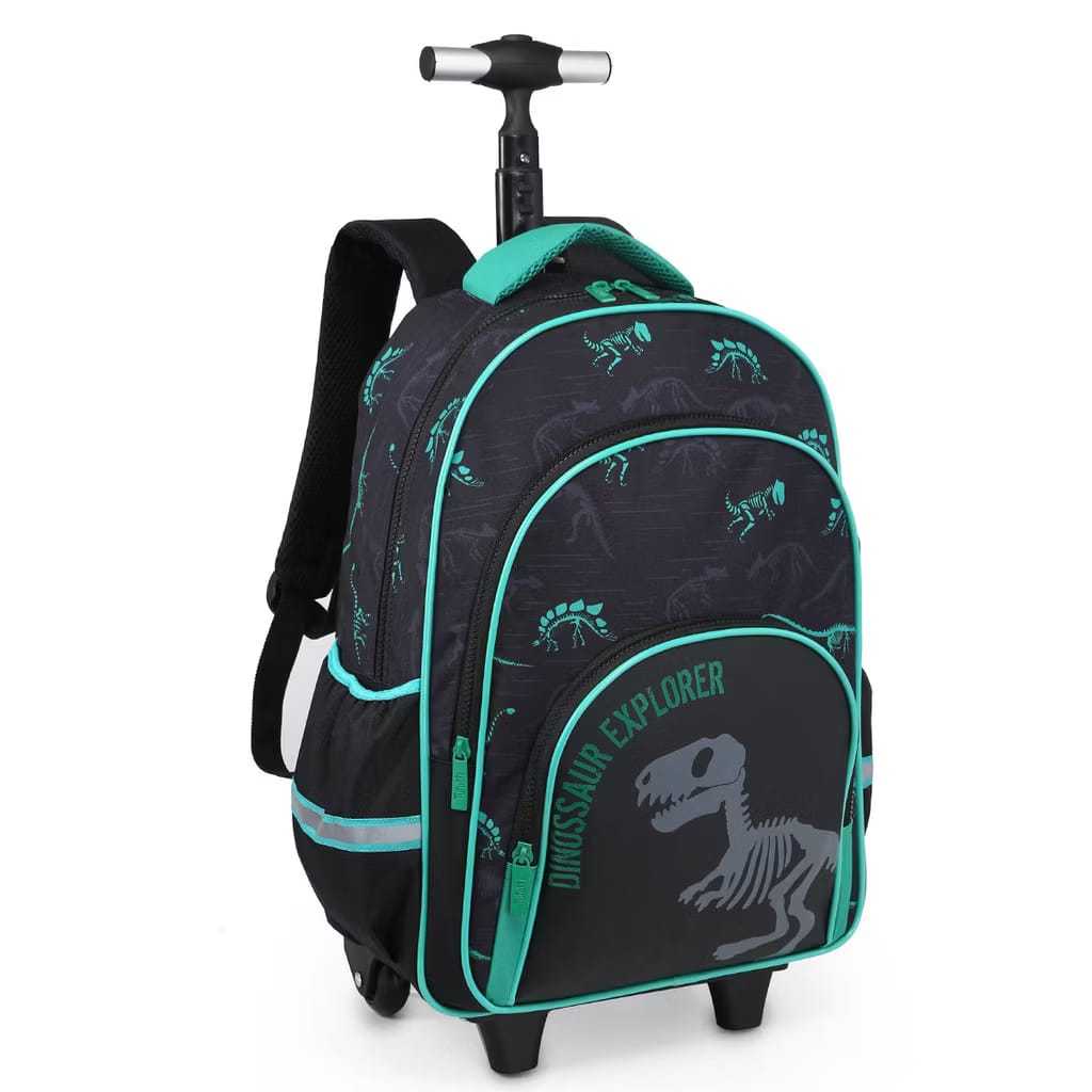 Kit Mochila Rodinha Dinossauro Estojo E Lancheira 3 peças