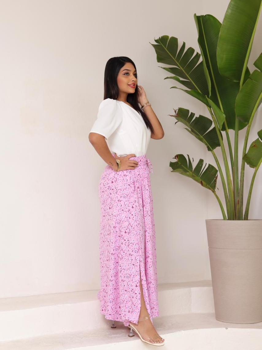 SAIA LONGA ESTAMPADA, COM BOLSO, E FENDAS NAS LATERAIS CINTURA ALTA USO EVANGELICA SOCIAL. TENDENCIA 2026