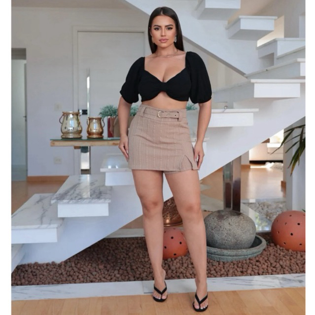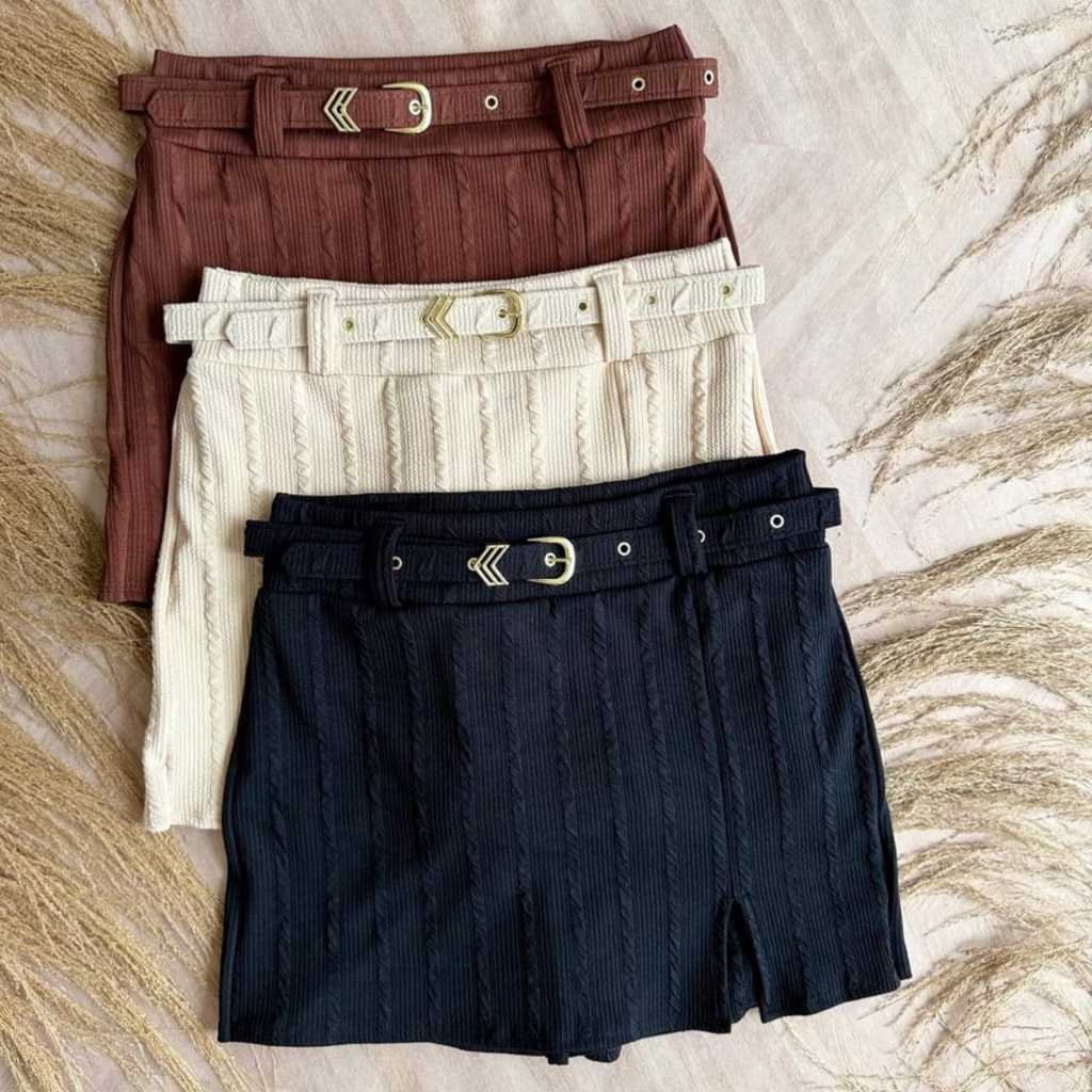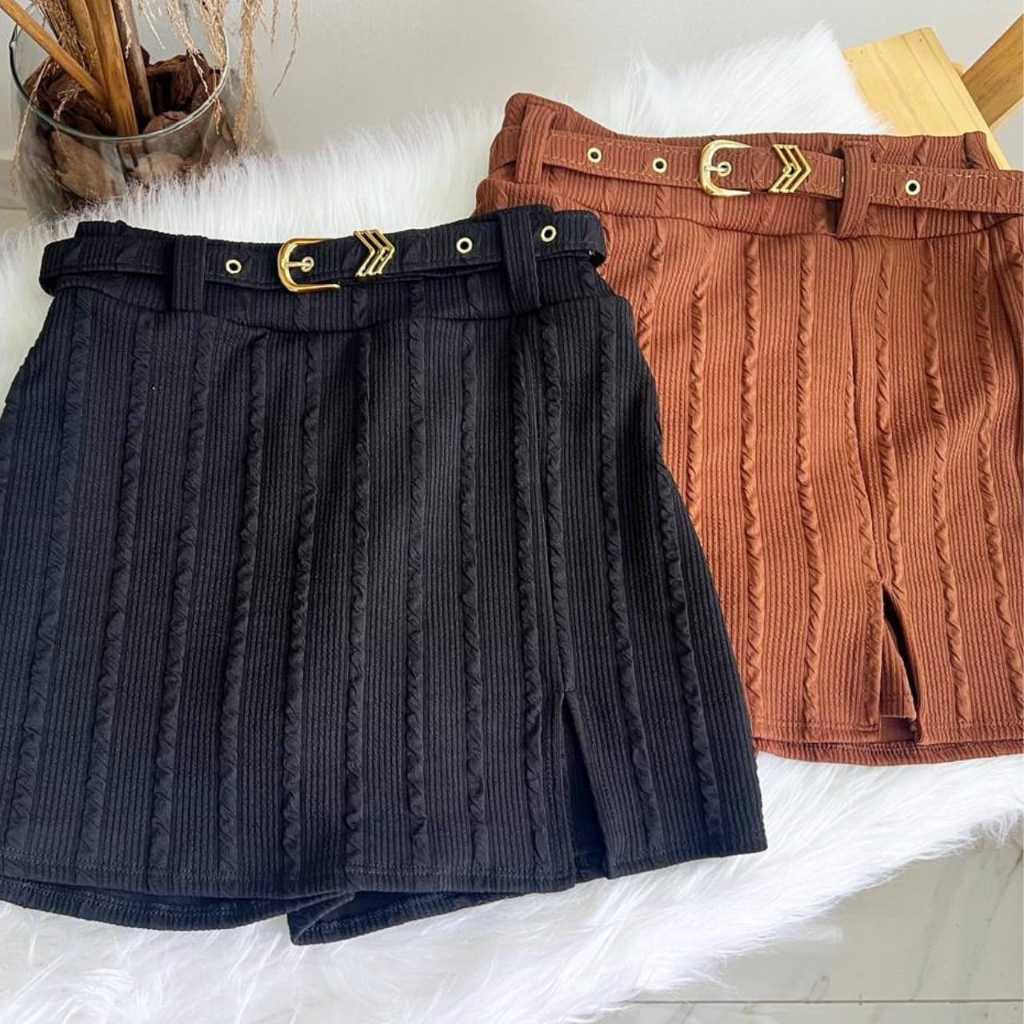 short saia feminino alfaiataria com cinto forrado cintura alta lançamento estiloso tendência inverno 2026 frio/verão