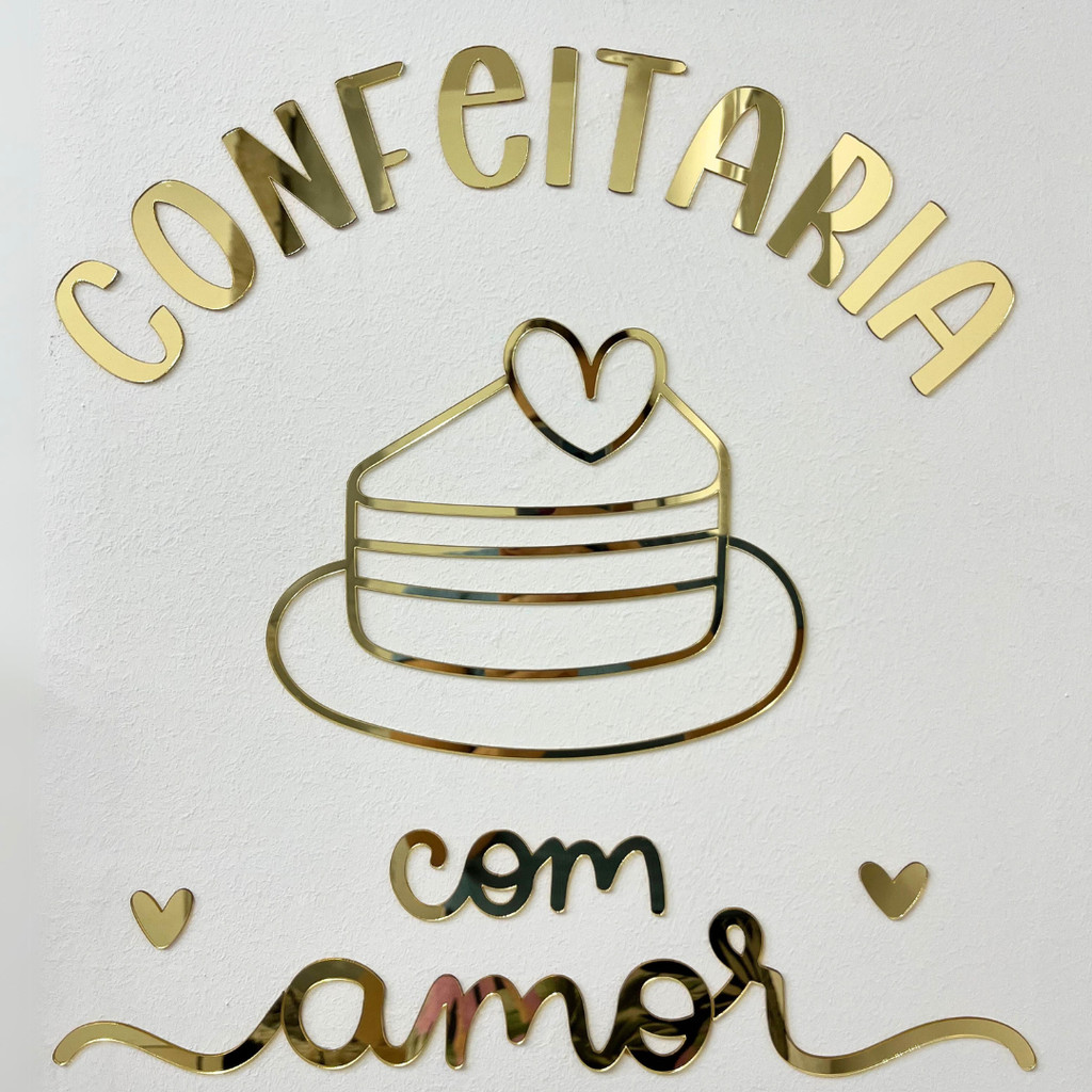 Aplique de Parede Acrílico Recorte Decorativo em Acrílico Confeitaria com Amor
