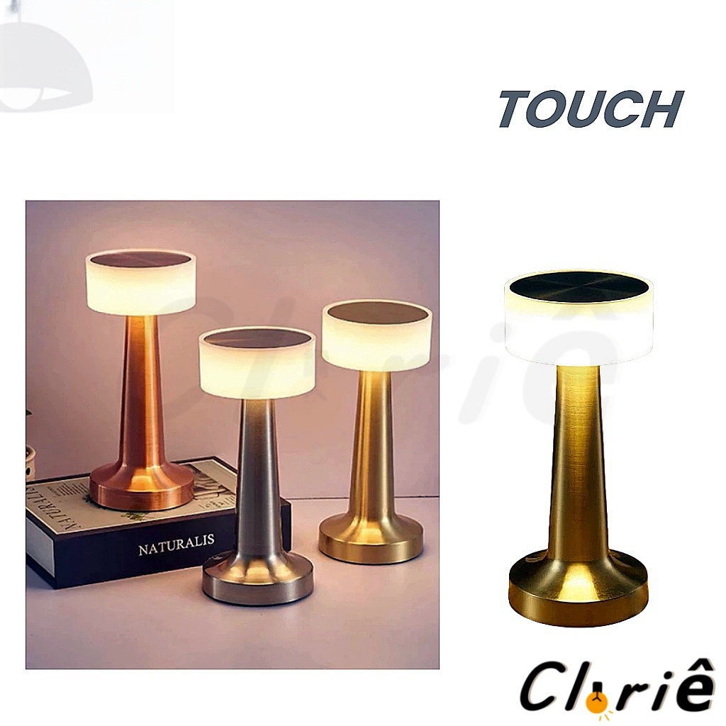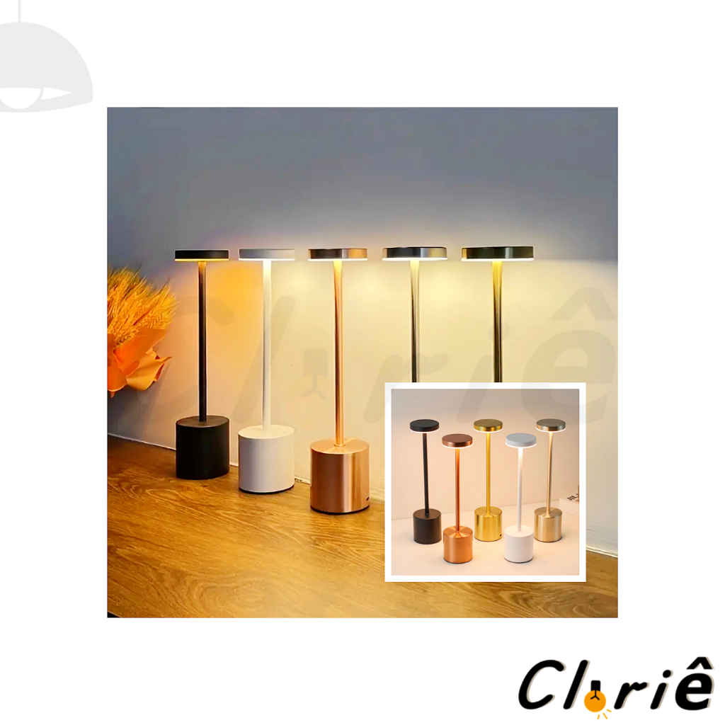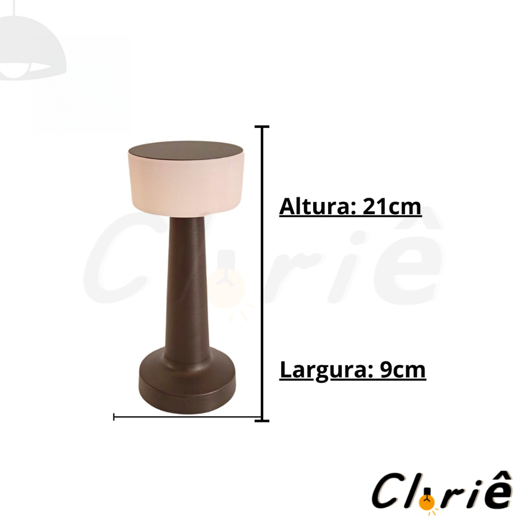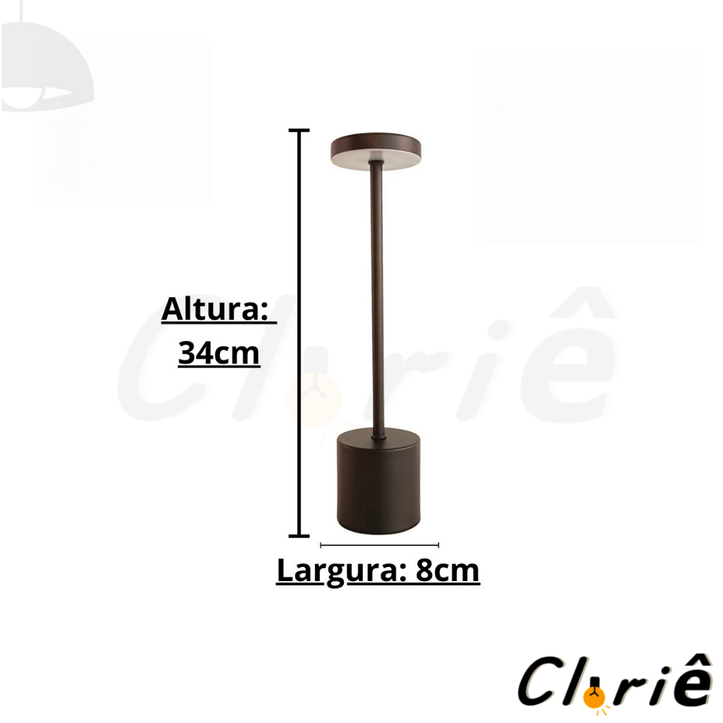 Luminária de Mesa Abajur Cabeceira Escrivaninha LED 3 em 1 Recarregável Tipo C Preto Cromado Dourado