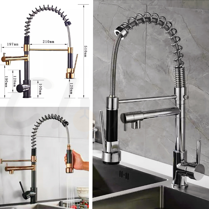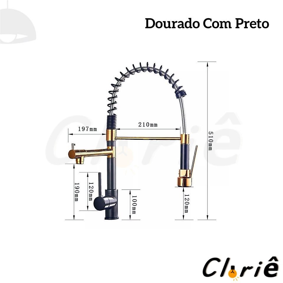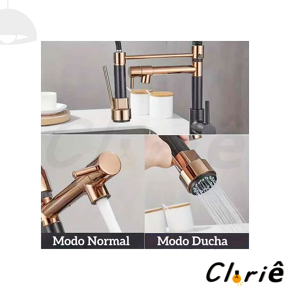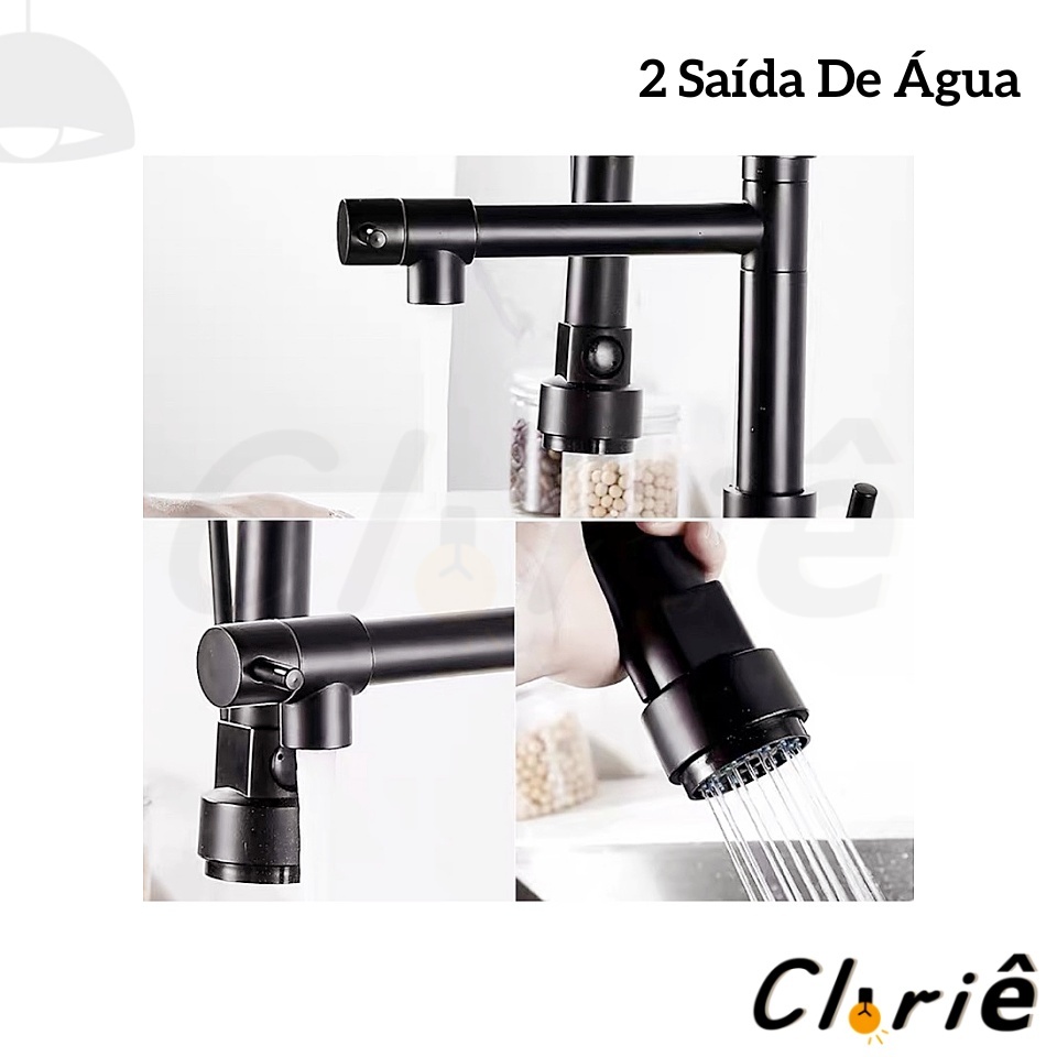 Torneira Monocomando Cozinha Gourmet Dourado Rose Preto Torneira Misturadora Moderna 2 Saída de Água