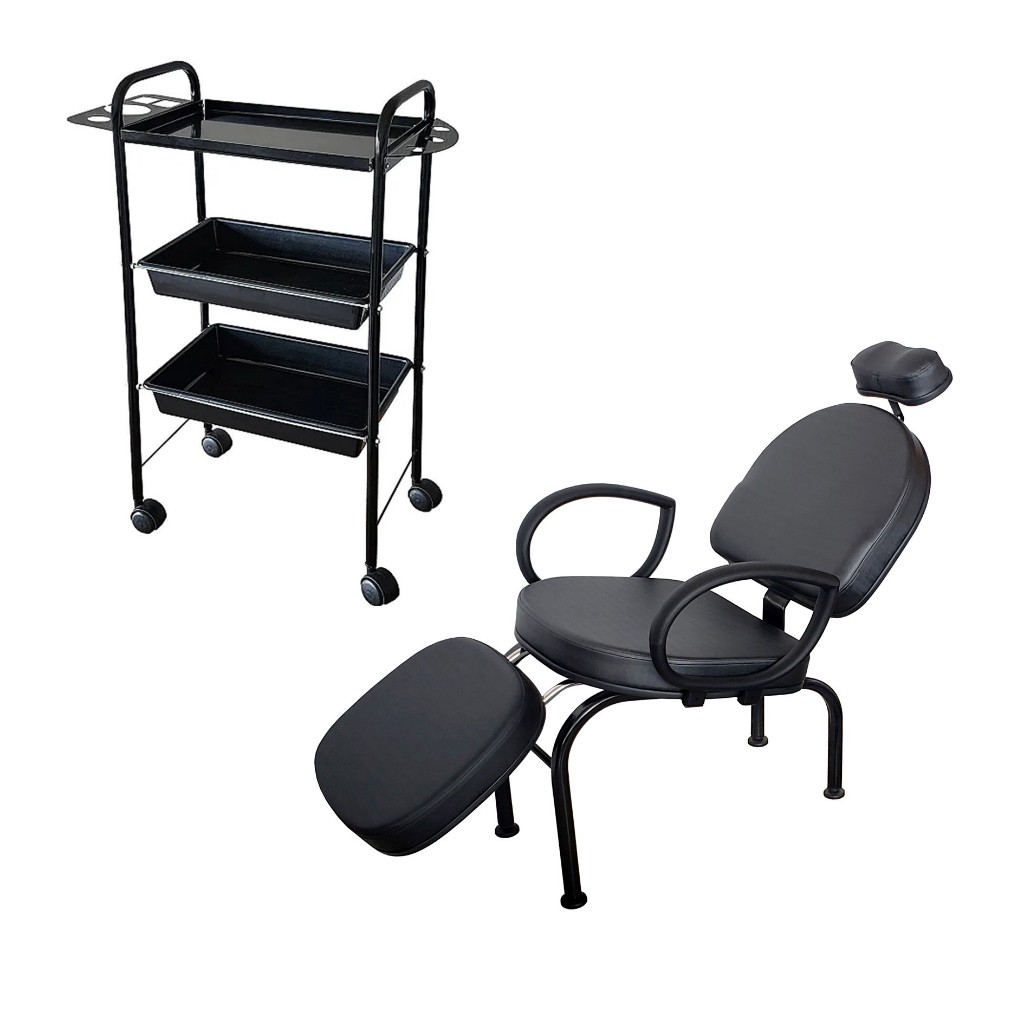 Kit Cadeira Confort com Carrinho Auxiliar Profissional - Maquiagem