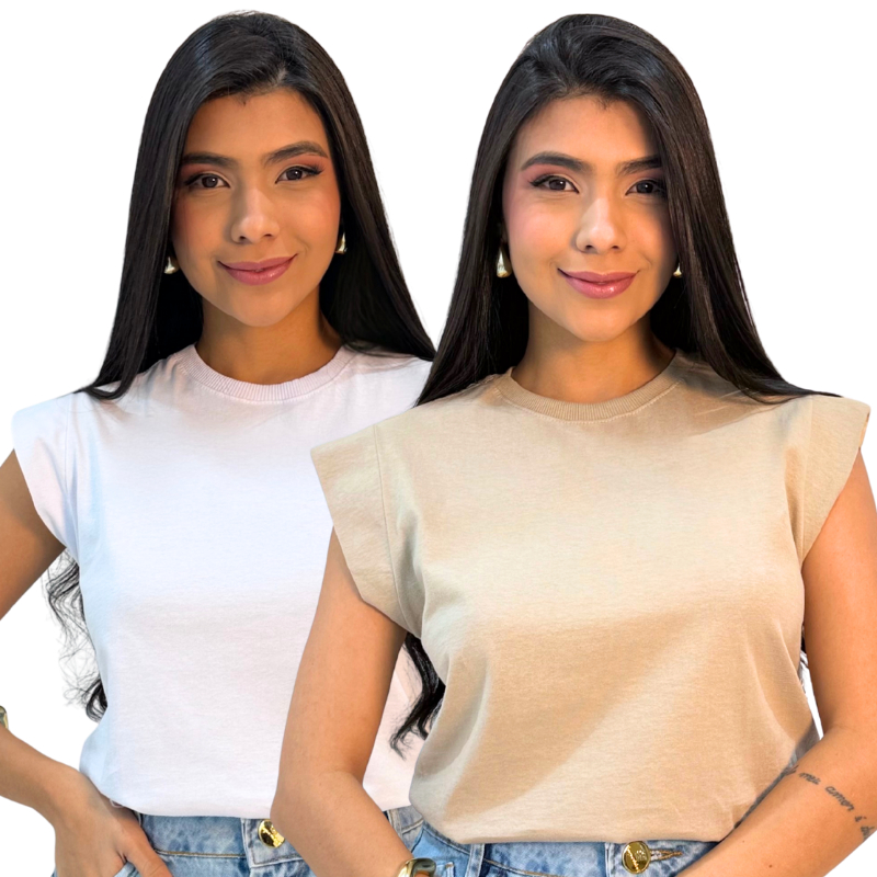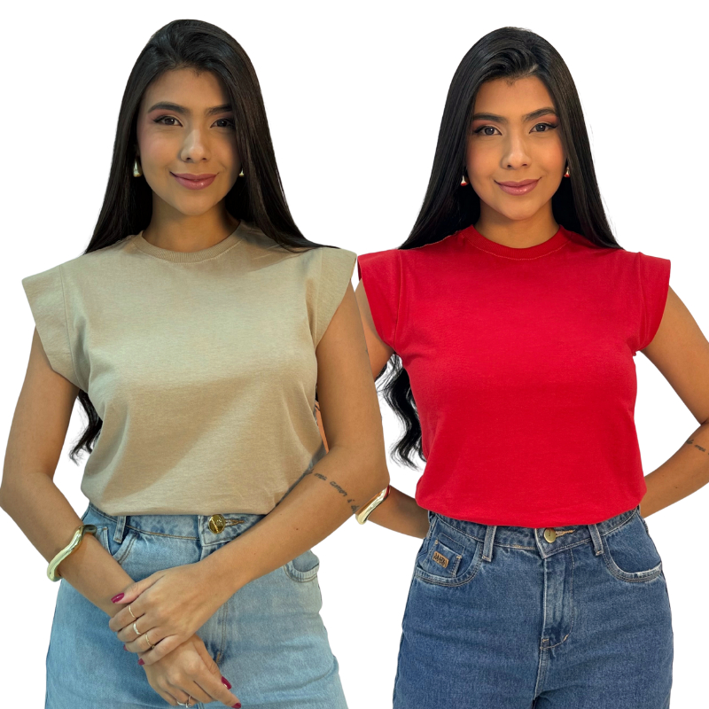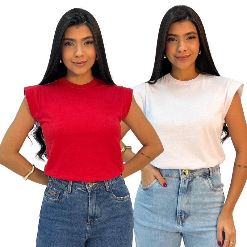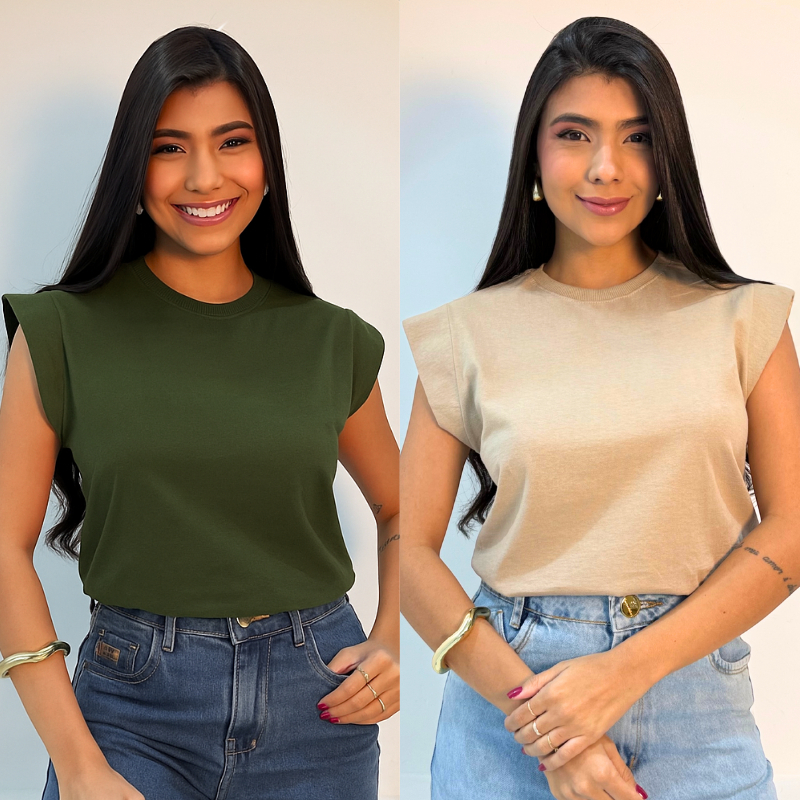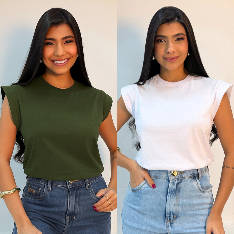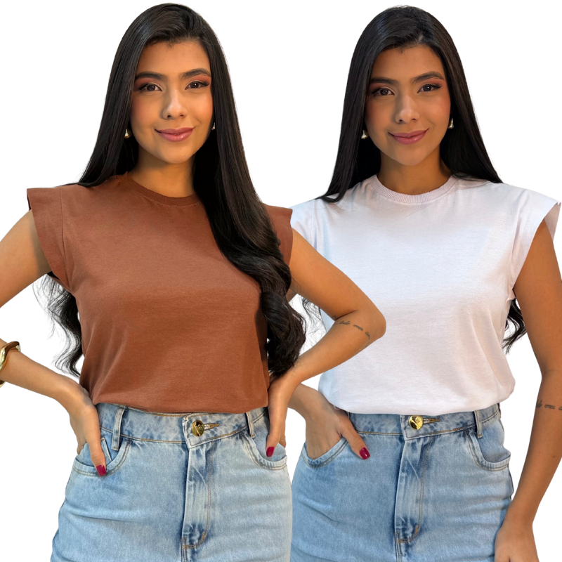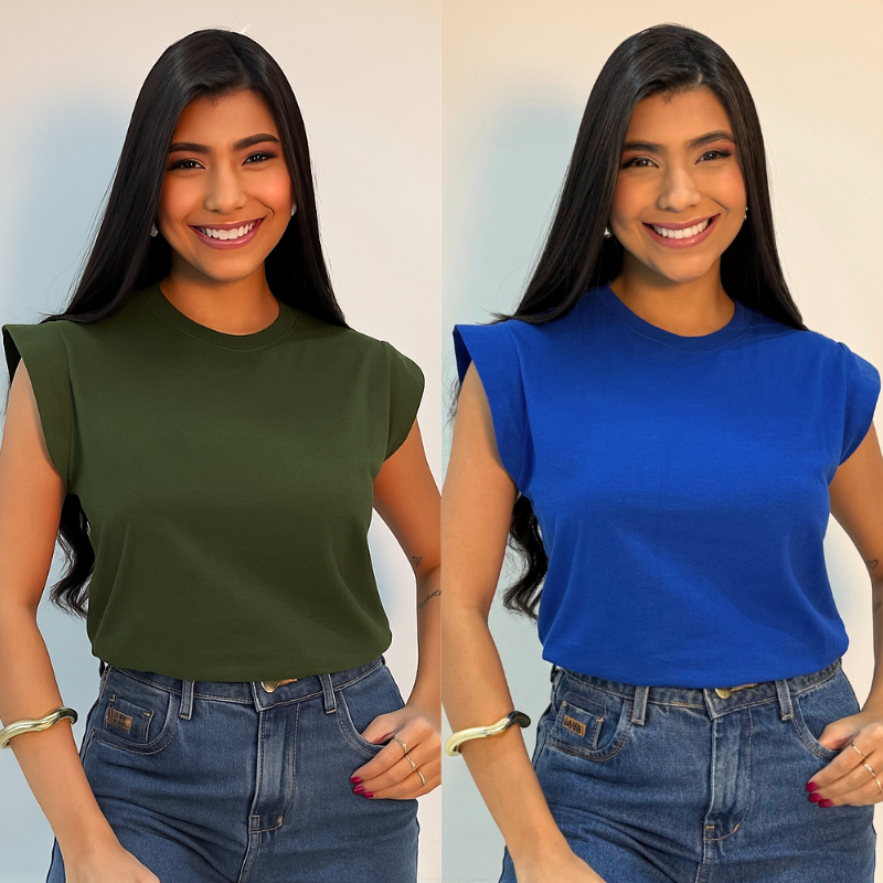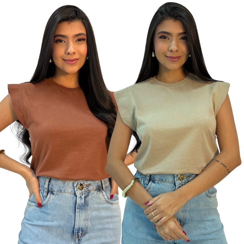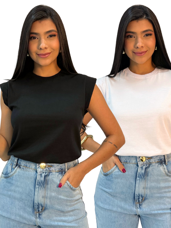 Kit 2 Blusas Muscle Feminina Camiseta Elegante 100% Algodão e Dia Dia