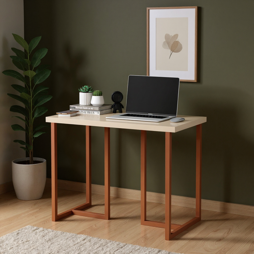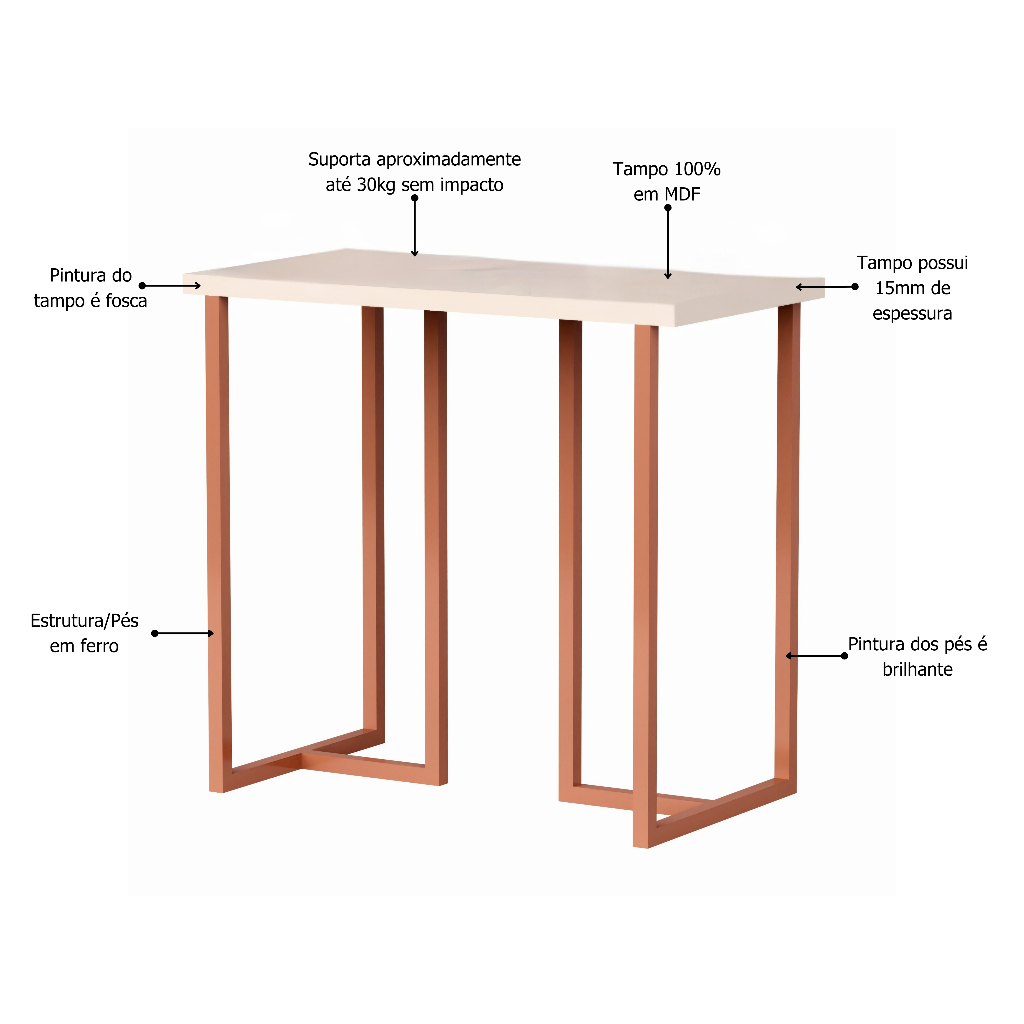 Mesa De Estudo Pequena Escrivaninha Para Computador Notebook Mali 76cm - Off/Cobre