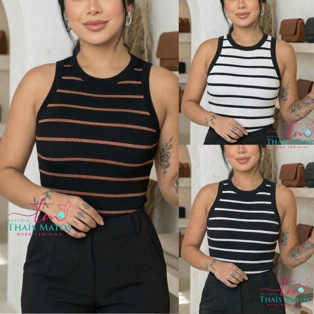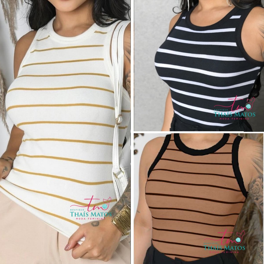 Kits Camiseta Regata Feminina Canelada Listrada e Lisa Ribana Camiseta Básica Blusa Casual