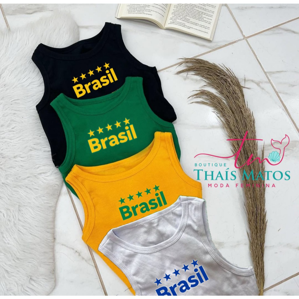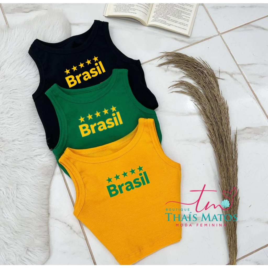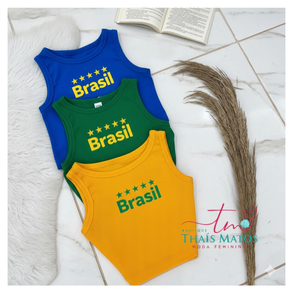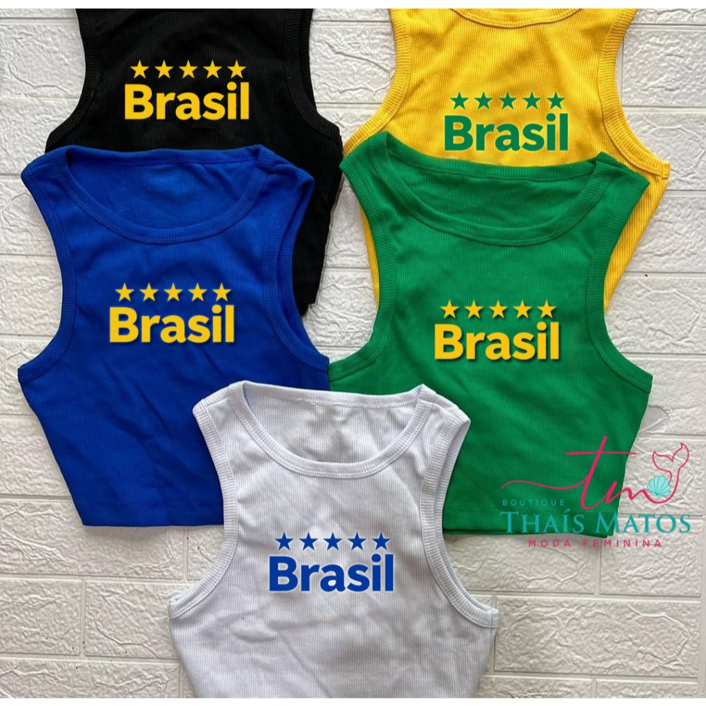 Camiseta Regata Top Cropped Brasil Copa do Mundo Canelada Premium Cores Vivas Verão