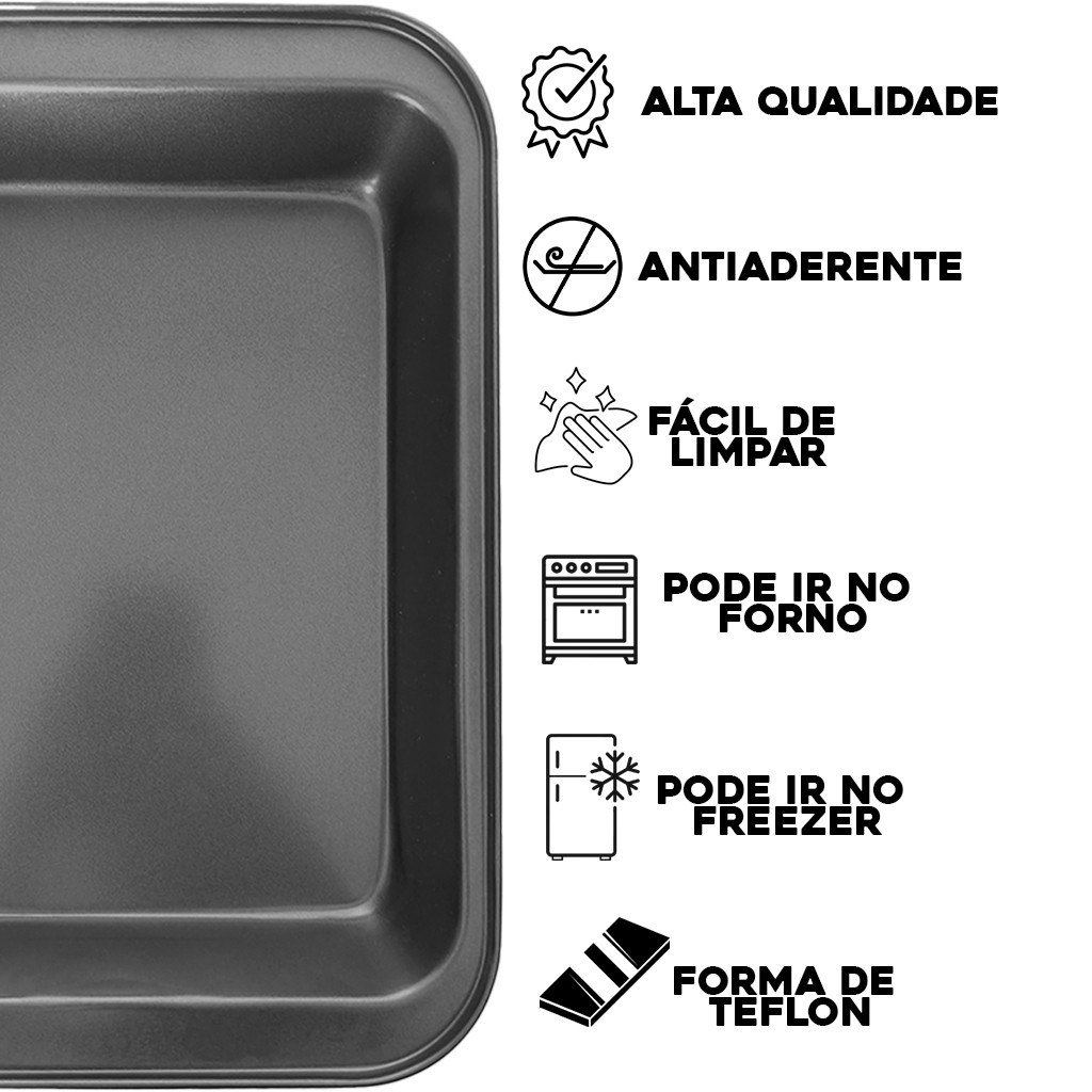 Kit 2 Forma Assadeira Retangular Antiaderente Teflon Bolo Pão Cuca Lasanha Torta Aço Empada Grande