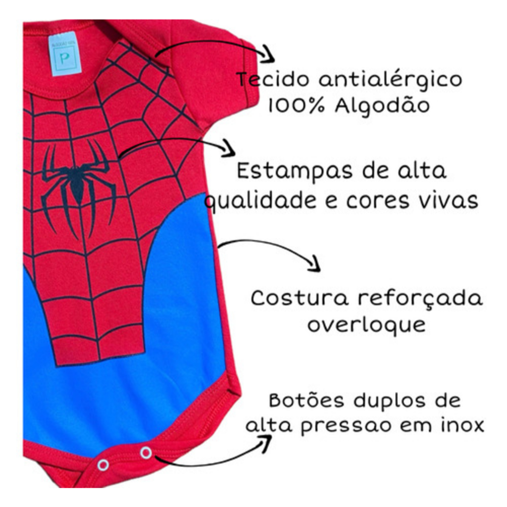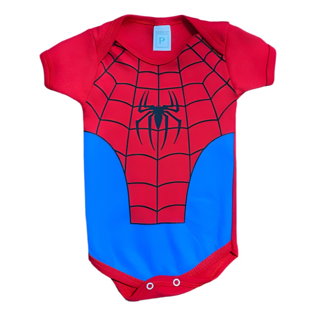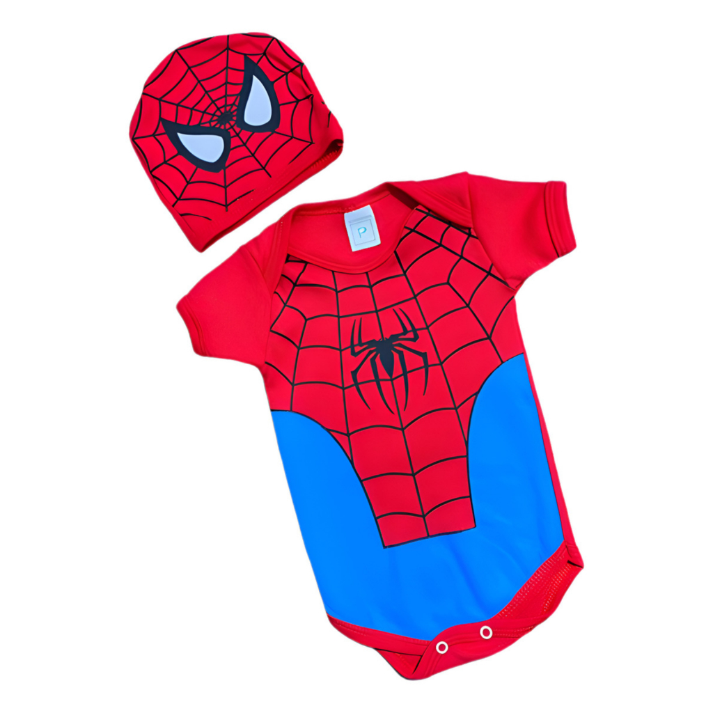 Body Bebê Tématico + Touca Homem Aranha Mêsversario fantasia Menino