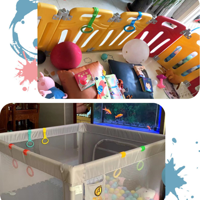 4pcs Para Pingentes Playpen Pendants Baby Toys Pull Ring Ajuda Stand Anel Pendurado De Uso Geral Anéis Berço Crib Hook