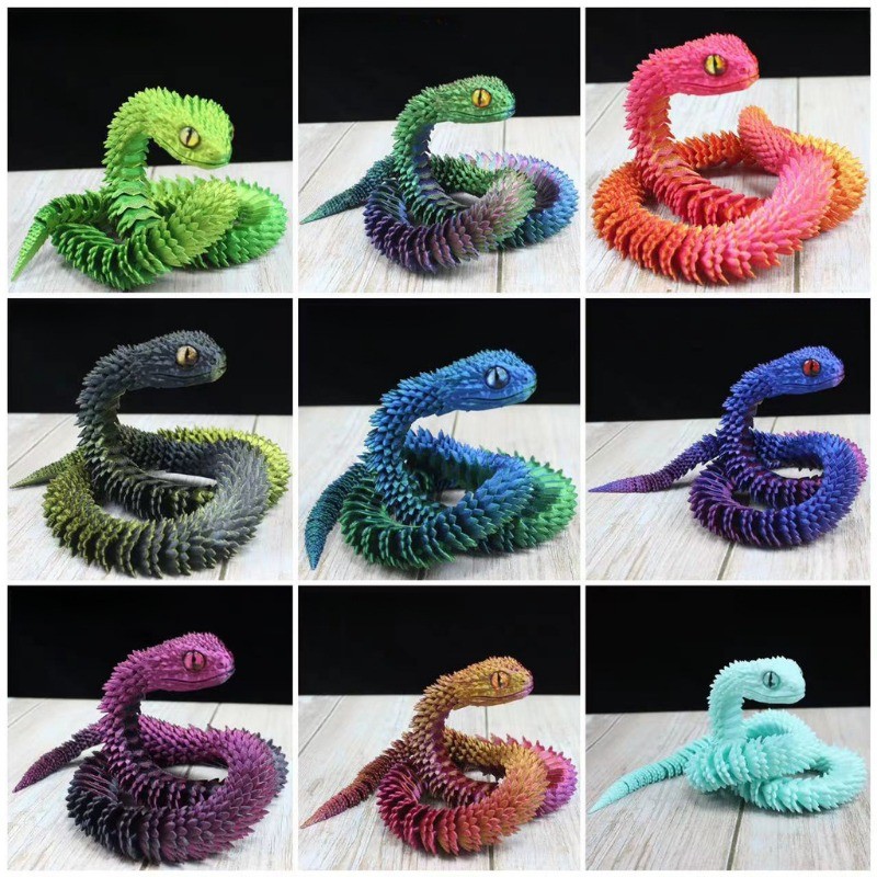 60cm Impressão 3D Articulação Móvel Super Longo Animal Mão Escritório Moda Jogar Simulação Cobra Tenda Popular Meninos B