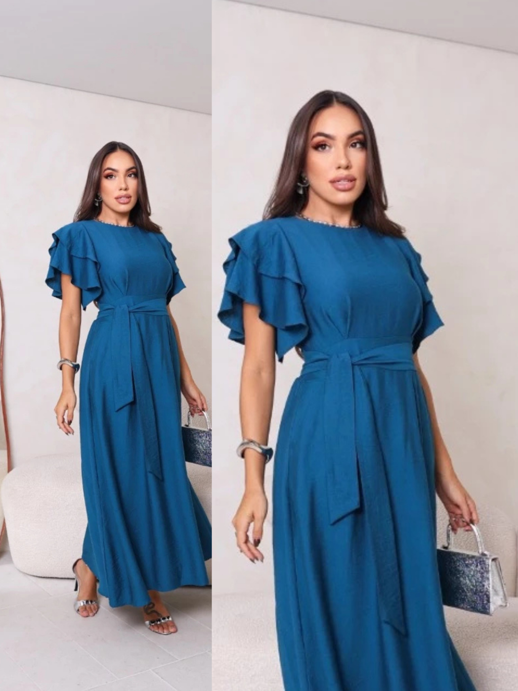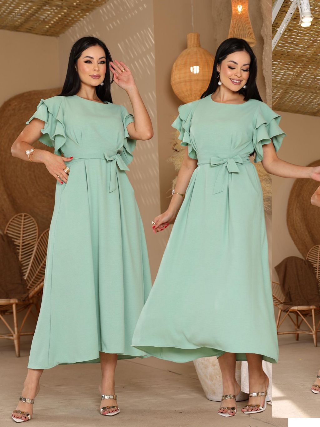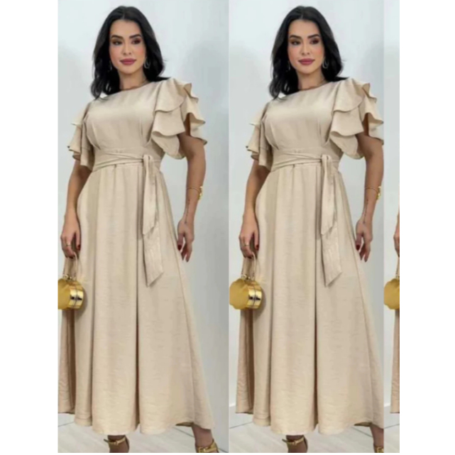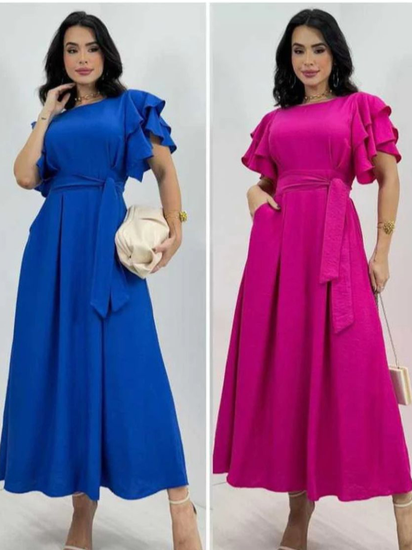 Vestido Feminino Manga Babado Detalhe Lastex na Costa Estilosa e confortável Tecido Duna não Amasa
