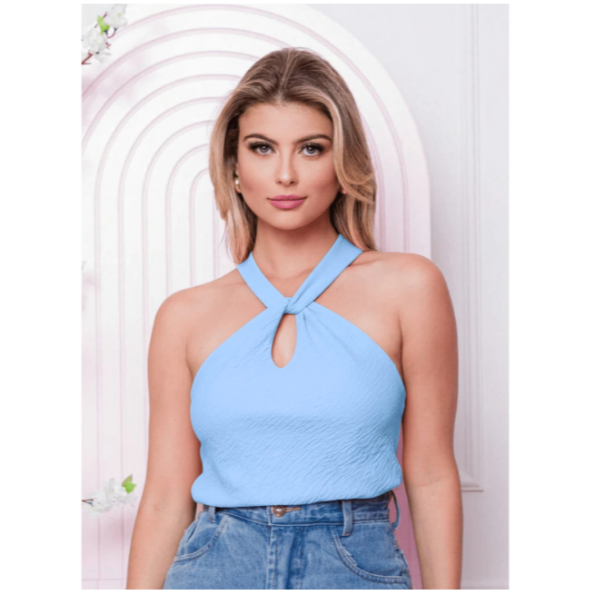 Blusa Feminina Crepe Duna Gola em Nó, Modelagem Moderna e Versátil