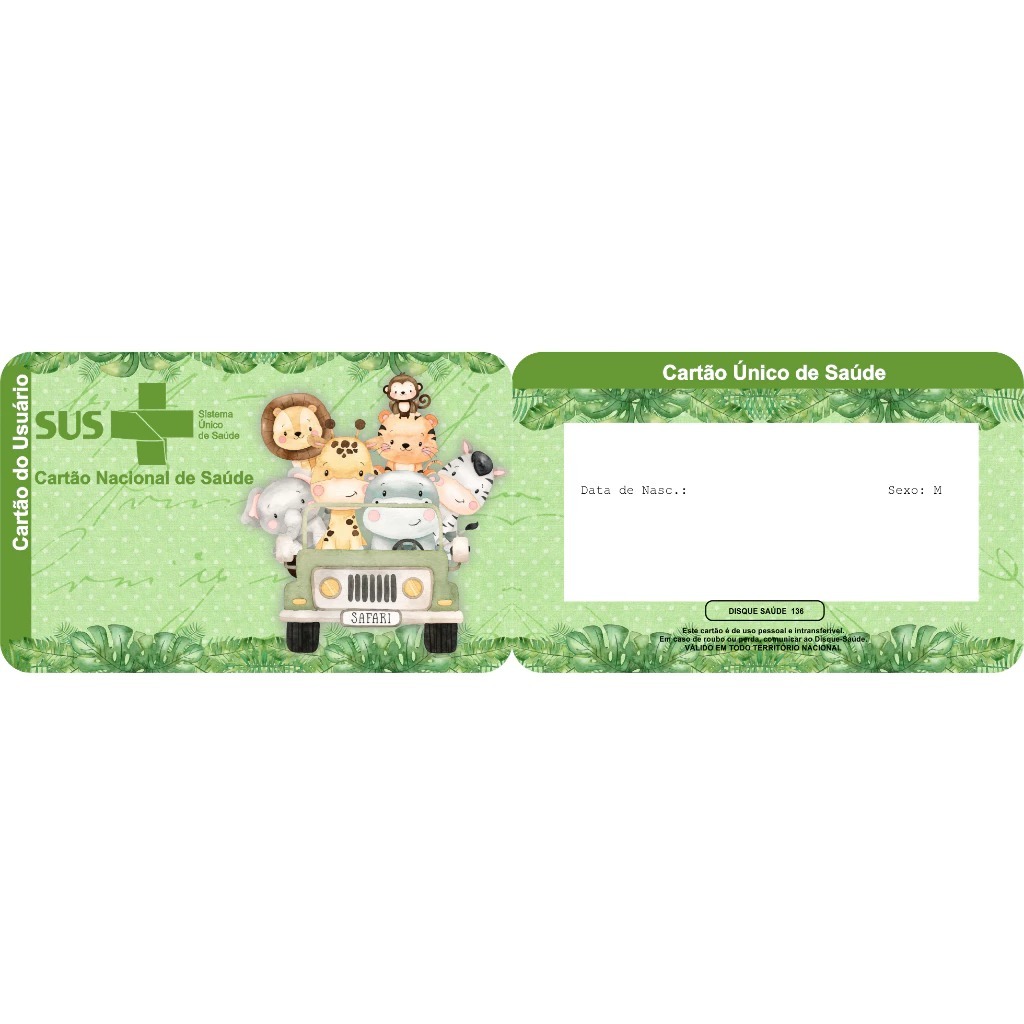 Cartão do SUS Personalizado com foto ou tema - frete grátis - enviar os dados no ato da compra CPF