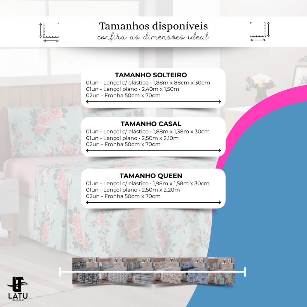 Jogo de Lençol 4 Peças Importado Hypercal Estampado Floral e Geométrico Solteiro/Casal/Queen Size