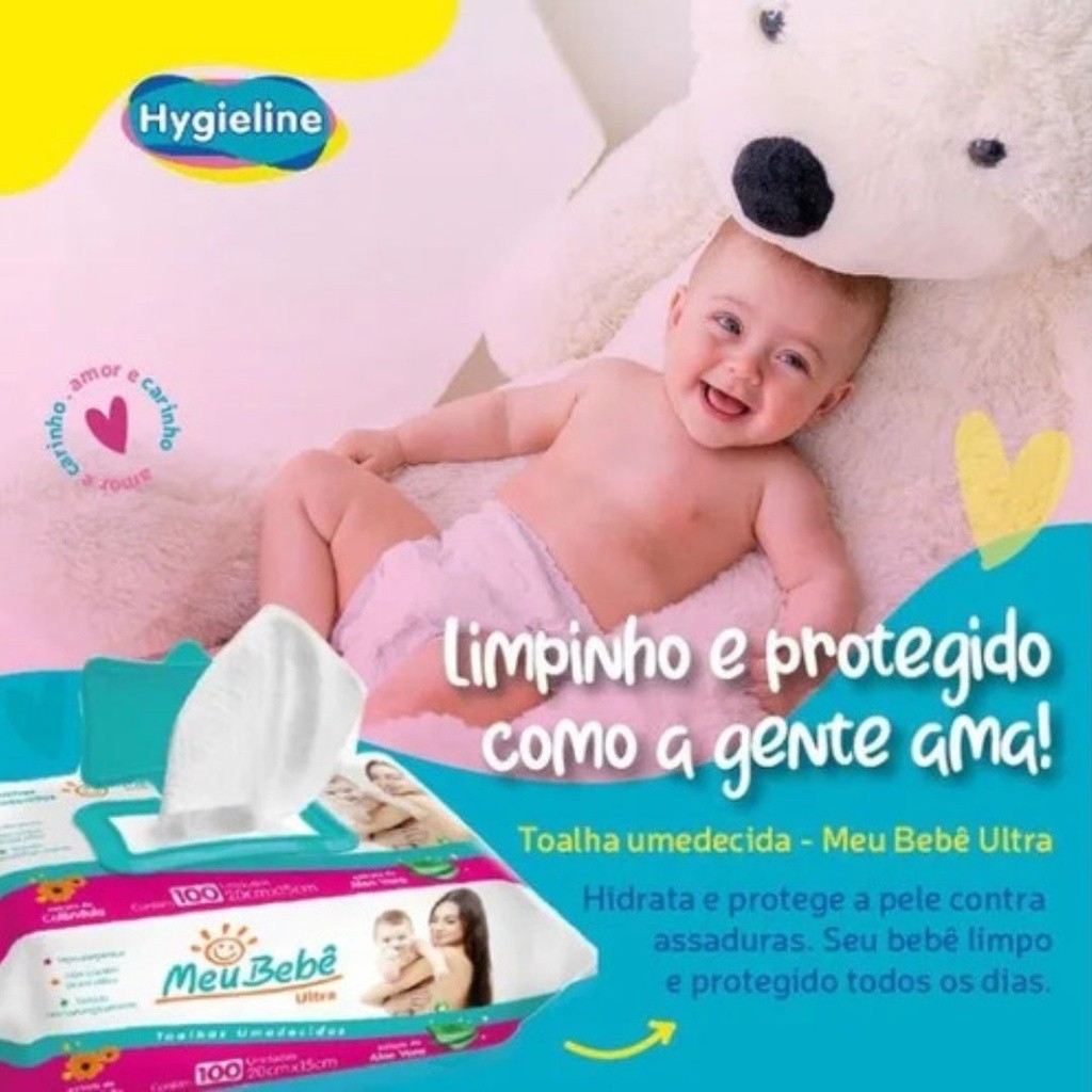 Kit Lenço/Toalha umedecida Meu Bebê Ultra c/ 400 unidades - 4 pacotes c/ 100 unid.