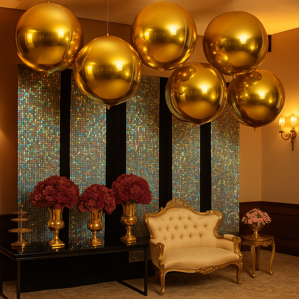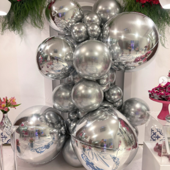 Kit 5 Balão 4d Metalizado Orbz Globo 10" 22" 32" 50" Polegadas Festa Decoração Todas as Cores