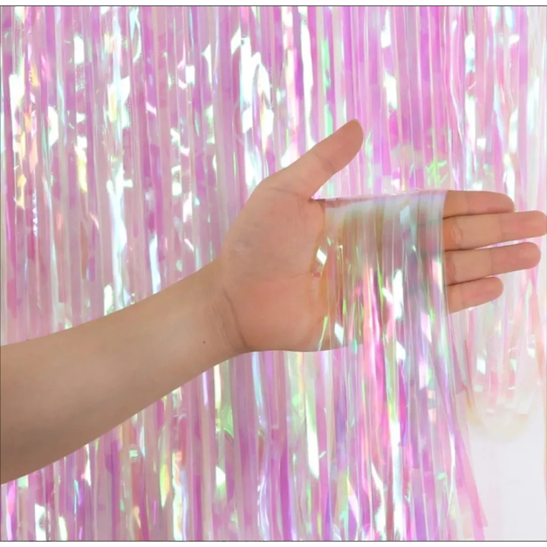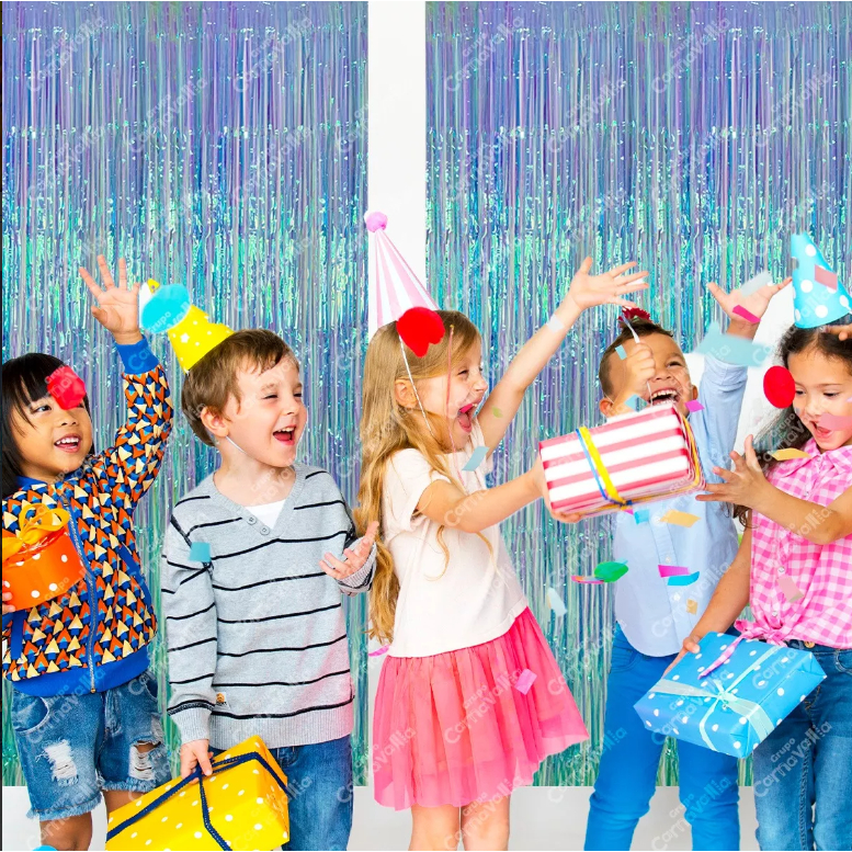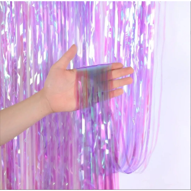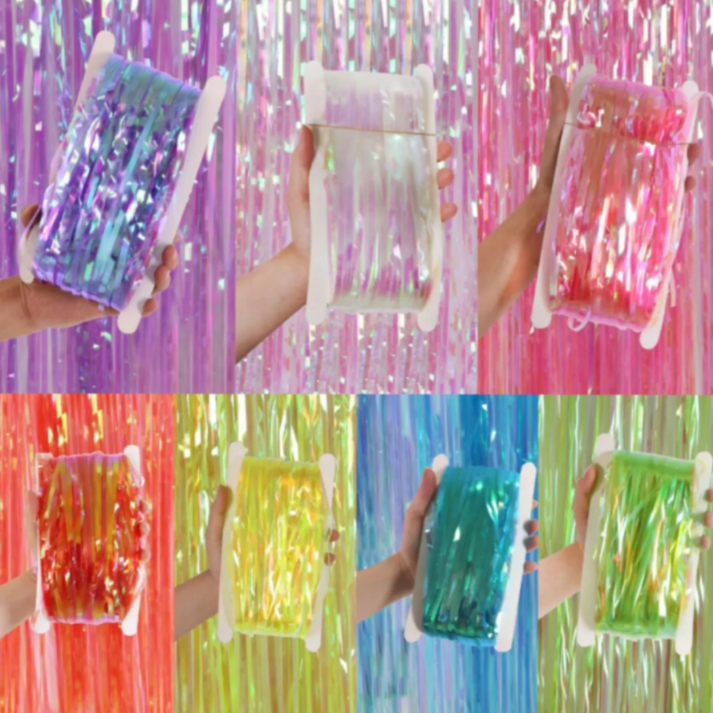 Kit 3 Cortinas Neon Metalizada Furta Cor 1x2m Enfeite 7 Cores Franja Decoração