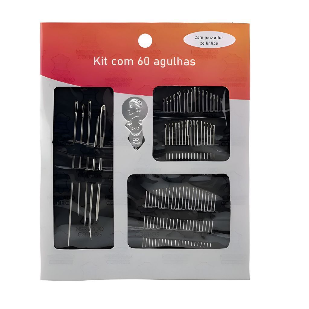 Kit 60 Agulhas Costura com Passador Manual Artesanal Bordar Remendar Com Tamanhos Diferentes