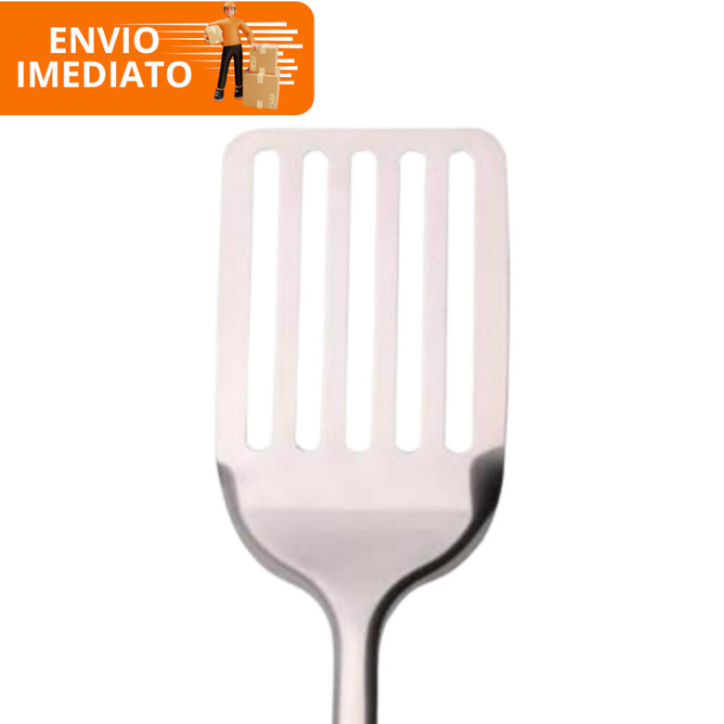 Espátula Vazada 100% Aço Inox para Fritura Hamburguer Gourmet Resistente Multiuso