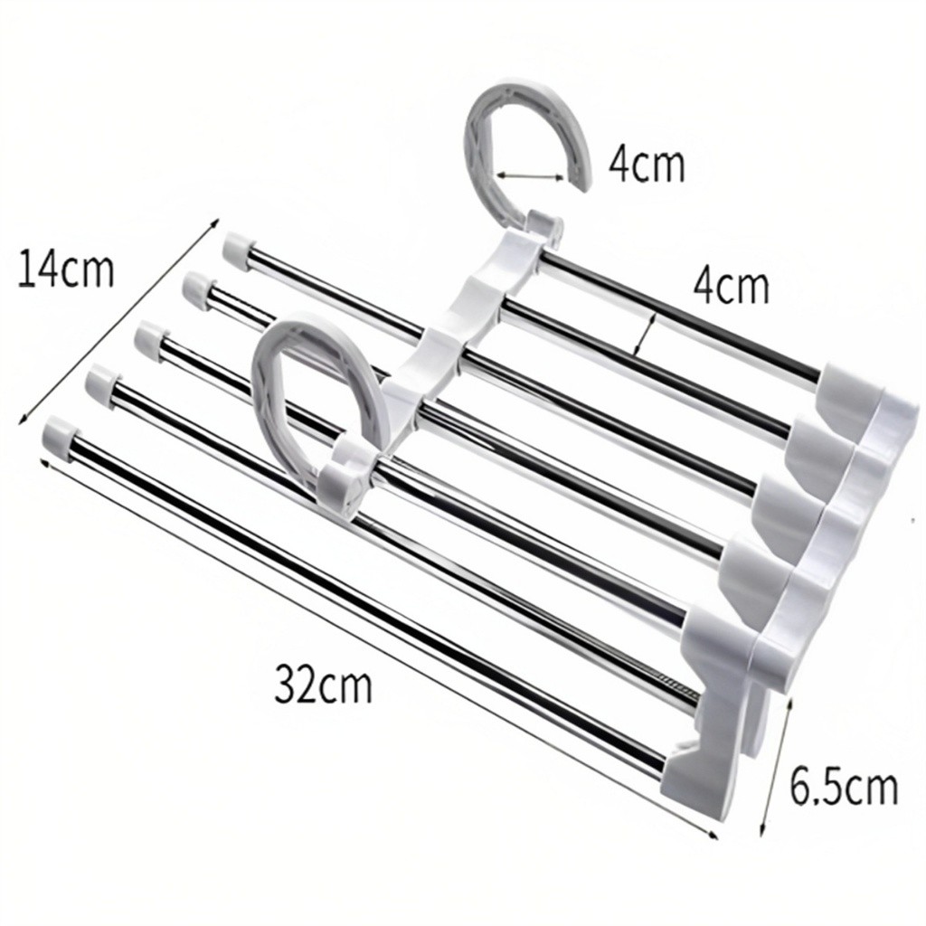 KIT 3 Peças Cabide De Roupas 5 Em1 Organizadores Para Guarda Calças Retrátil Multifuncional Aço Inoxidável