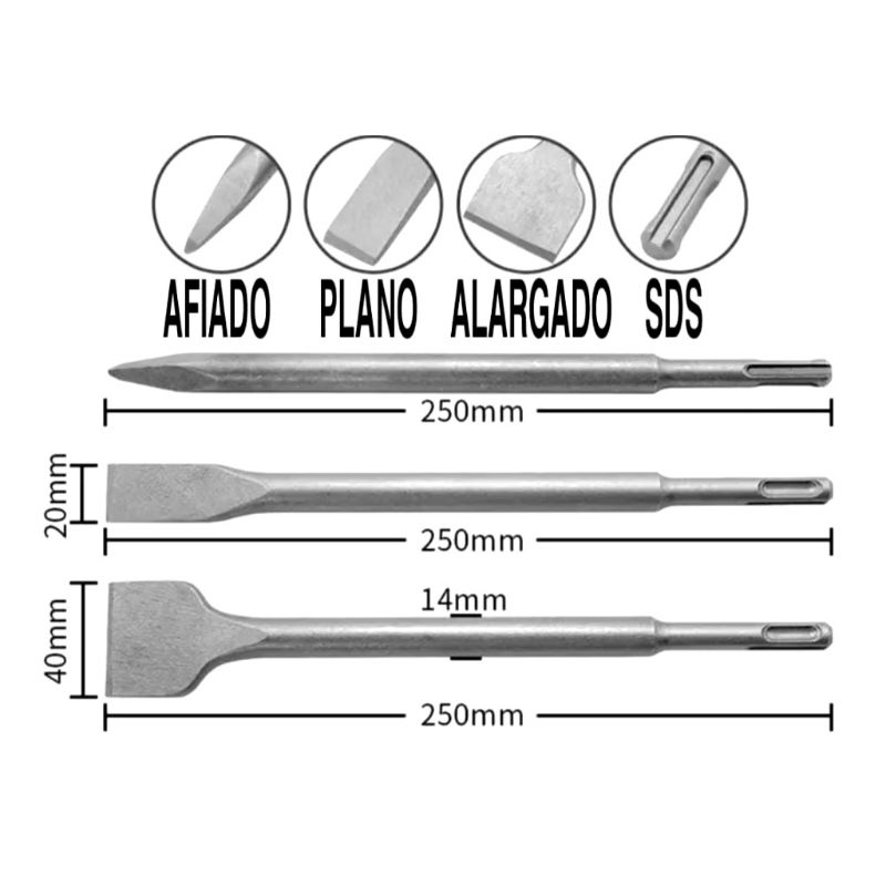 Kit 3 Pecas Ponteira E Talhadeiras Para Martelete Sds Aço Ferramenta Top 15273