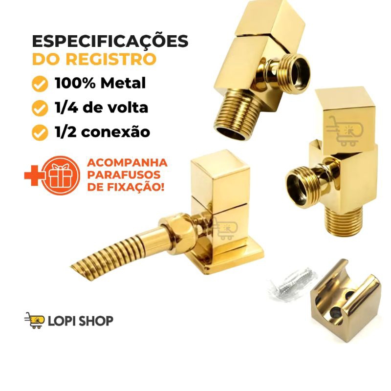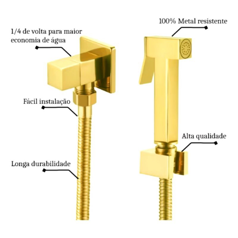 Kit Ducha Higiªnica Metal Dourada Ouro (11475G+15083G+14840G)