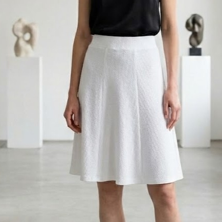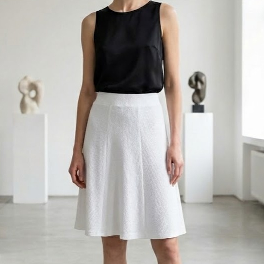 Saia Godê Rodada Em Crepe com recortes Moda Evangelica Mídi Abaixo do joelho