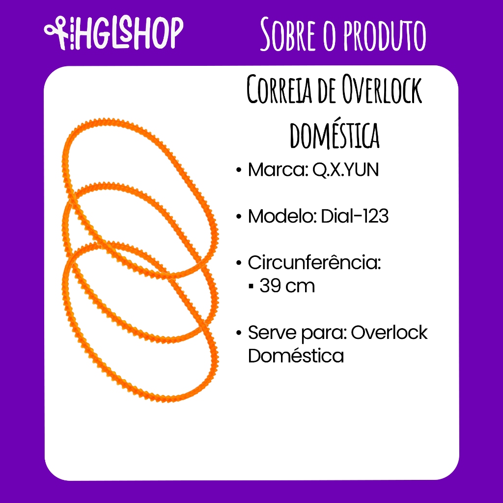3 Correia p/ Motor Overlock Máquina de Costura - GN1 FN1 FN2 Singer Elgin