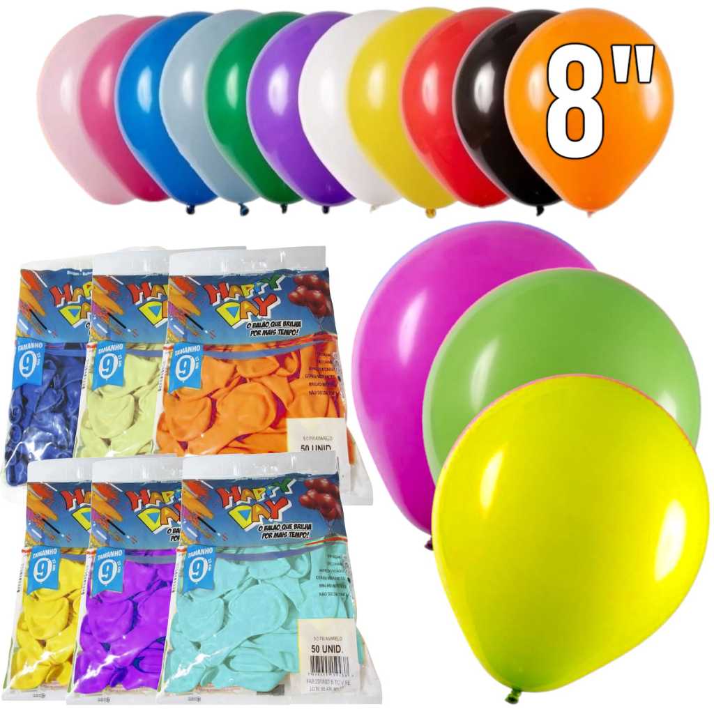 Balão de Aniversário Redondo N°8 -50 Unidades Bexiga Todas Cores - Happy Day Envio Imediato PROMOÇÃO