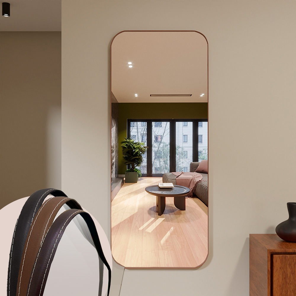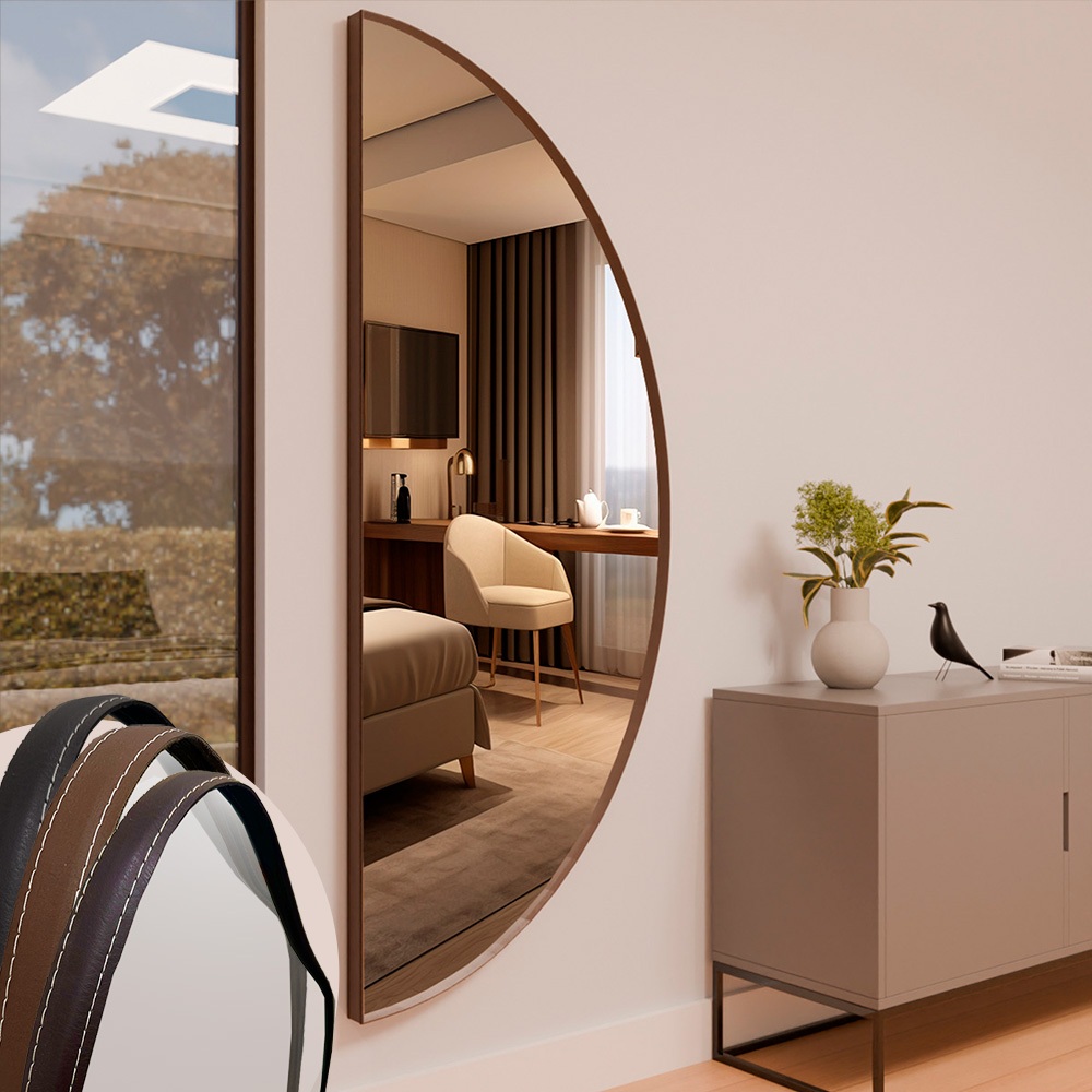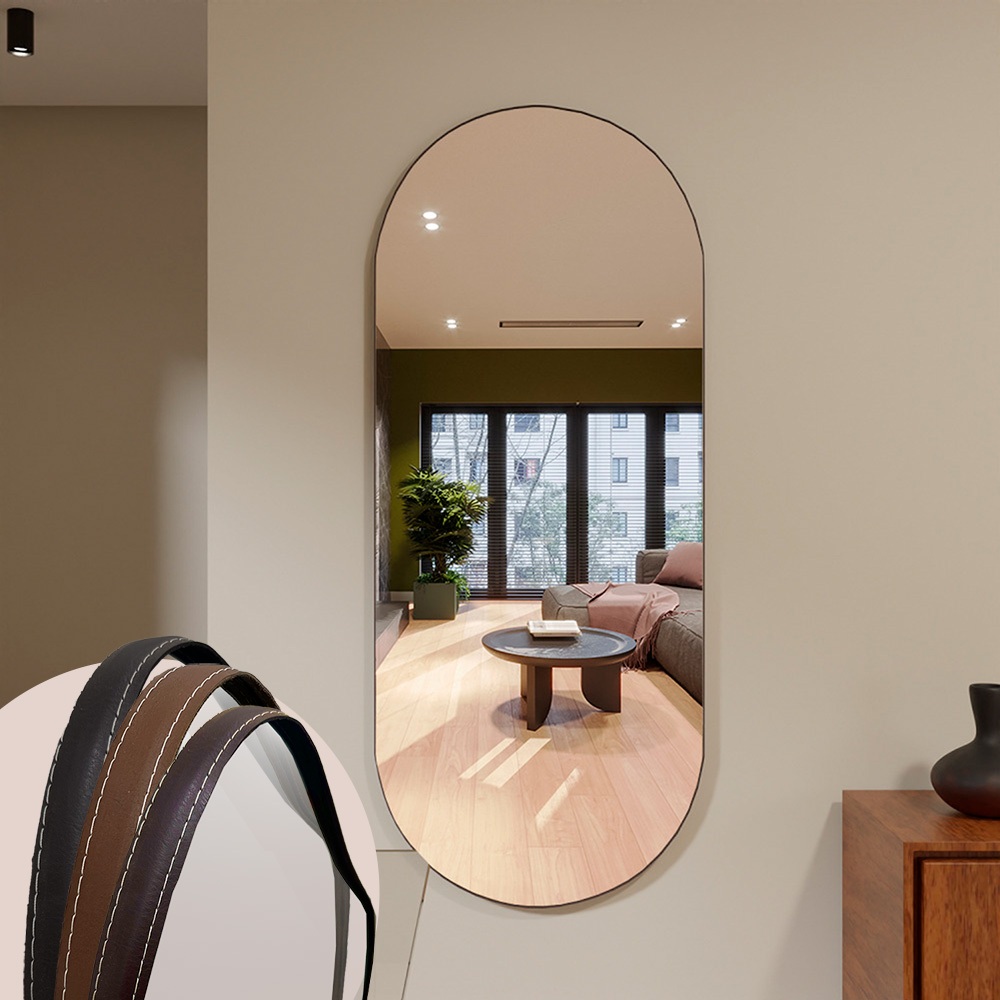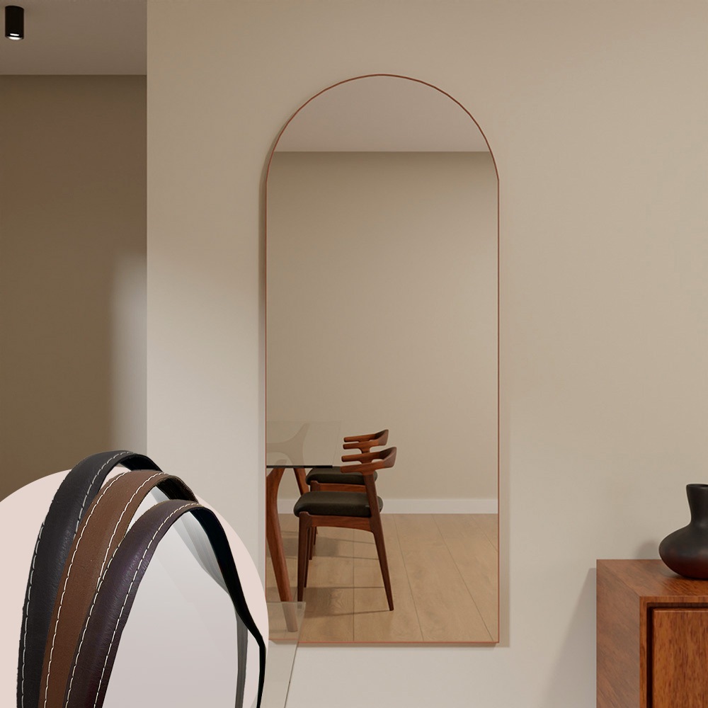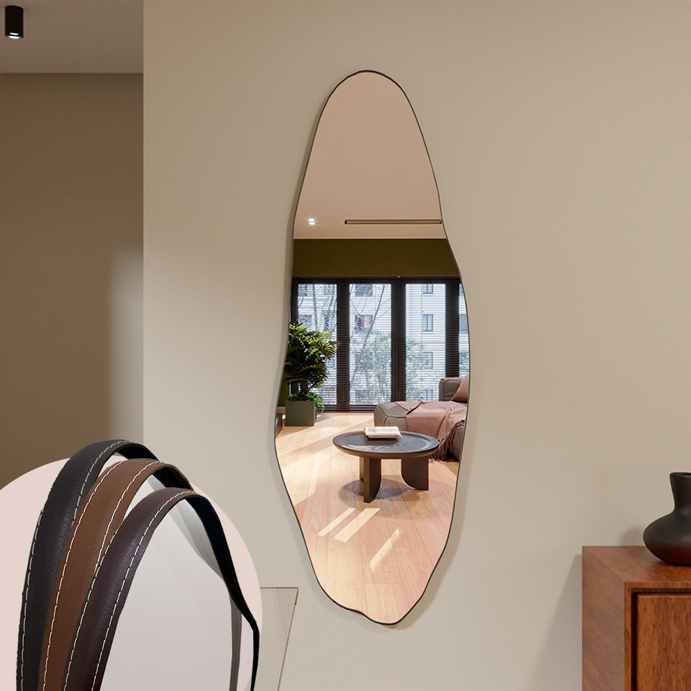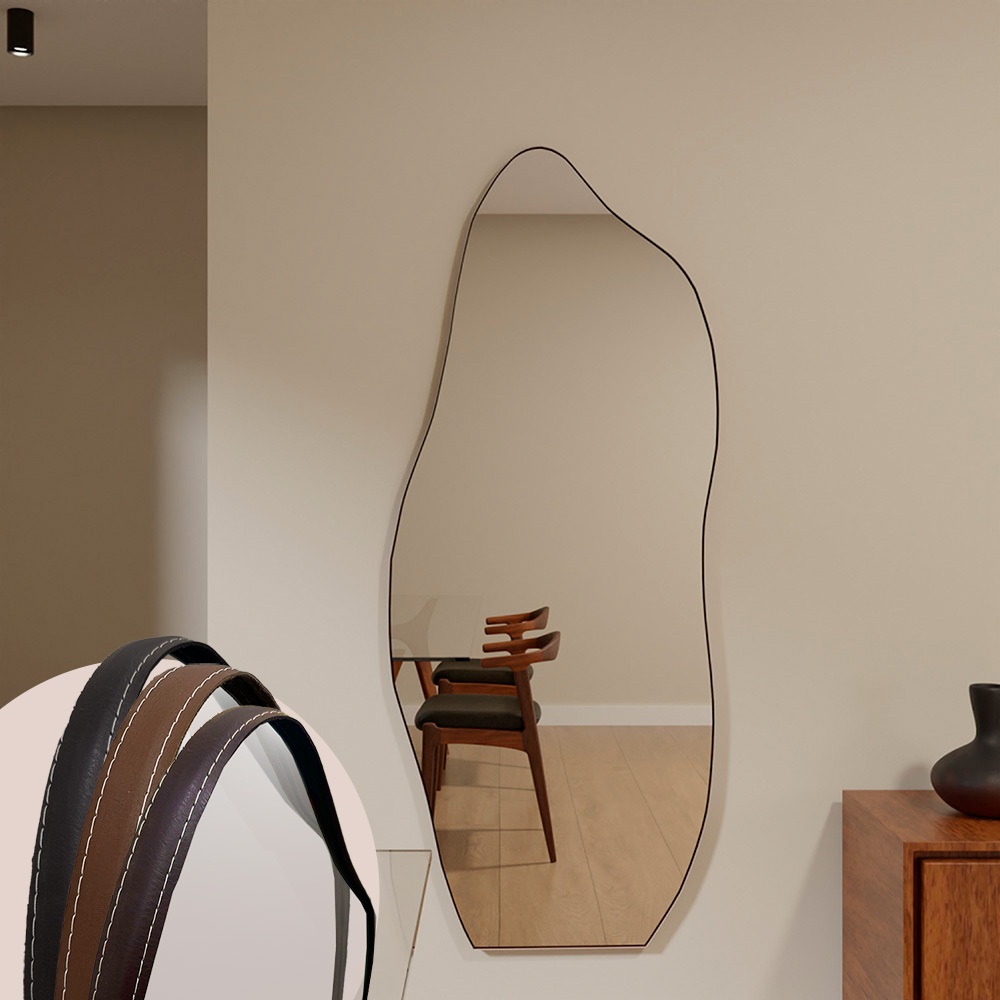 Espelho Organico Moldura Couro 170cm x 70cm Sala Quarto Salão Escritório