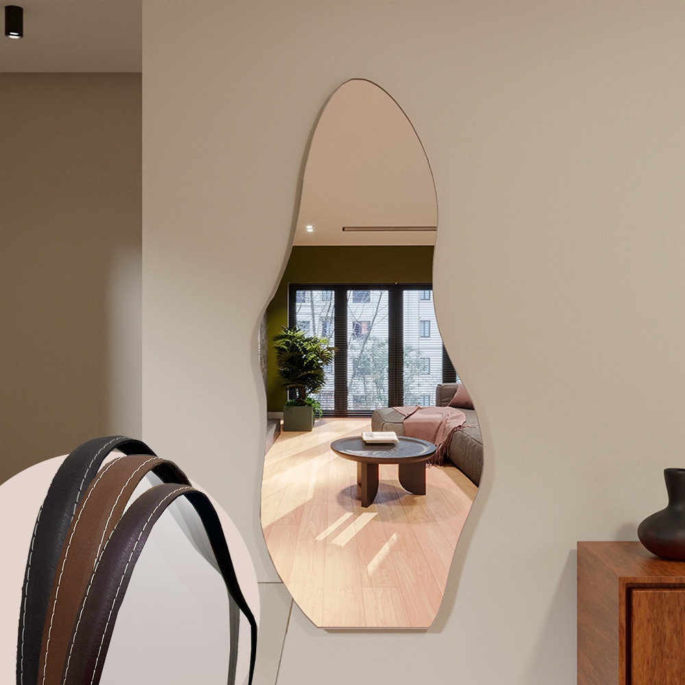 Espelho Orgânico ME15 Moldura Couro 110x50cm 150x60cm 170x70cm Corpo Inteiro Quarto Sala Banheiro
