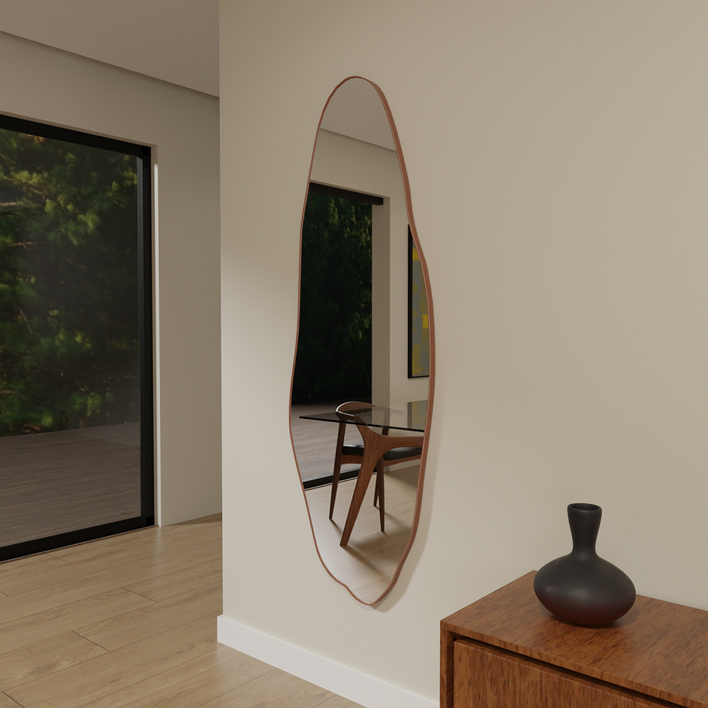 Espelho Orgânico E05 Moldura Couro 110x50cm 150x60cm 170cmx70cm Corpo Inteiro Quarto Sala Banheiro